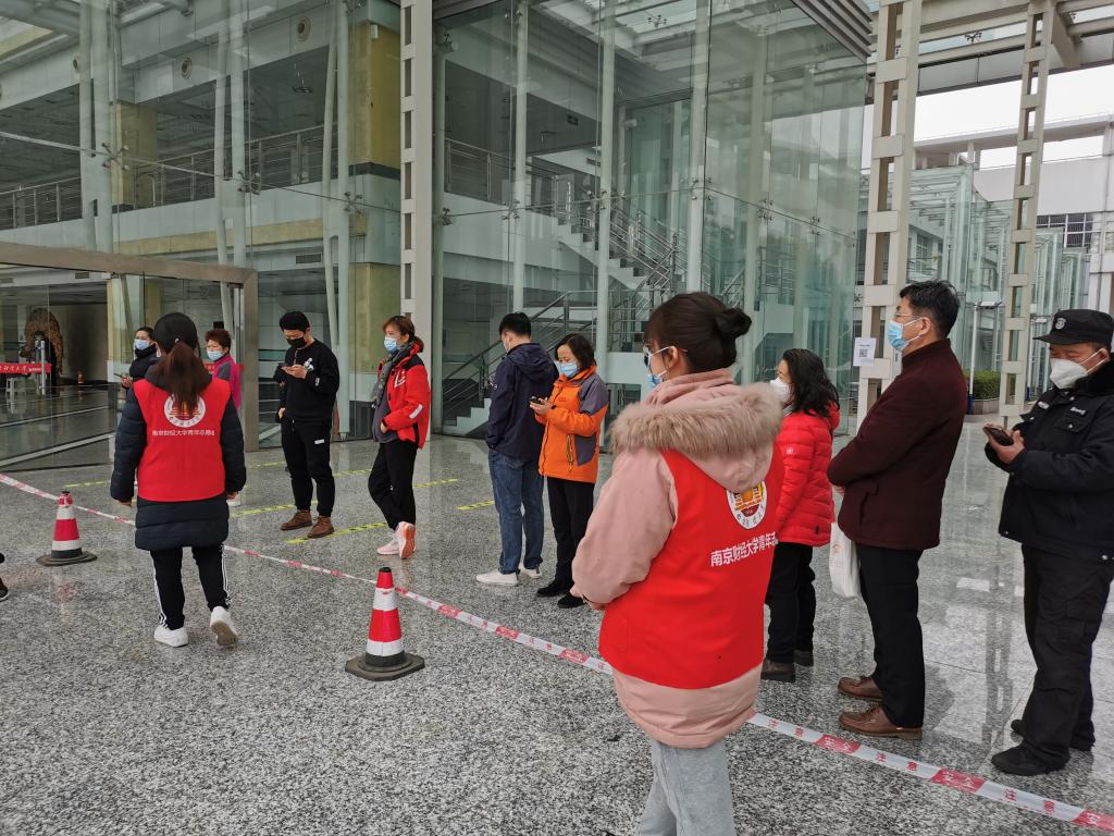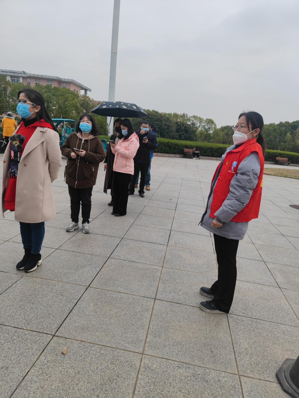 随着南京疫情防控形势的日渐严峻,校园常态化核酸检测任务也越来越重,维持现场秩序,确保检测工作安全、高效、有序进行十分重要。在校党委组织部的号召下,学院党委积极行动,各教工支部迅速响应,组建伟德国际victor·1946源自教师党员志愿服务队,为核酸检测的有序开展保驾护航。首批6位党员志愿者在经过校医院的相关培训后投入战疫工作,于是出现了文章开头的那一幕幕场景。她们精神抖擞走进“战场”,开始了3个小时不断线的核酸检测现场服务工作。