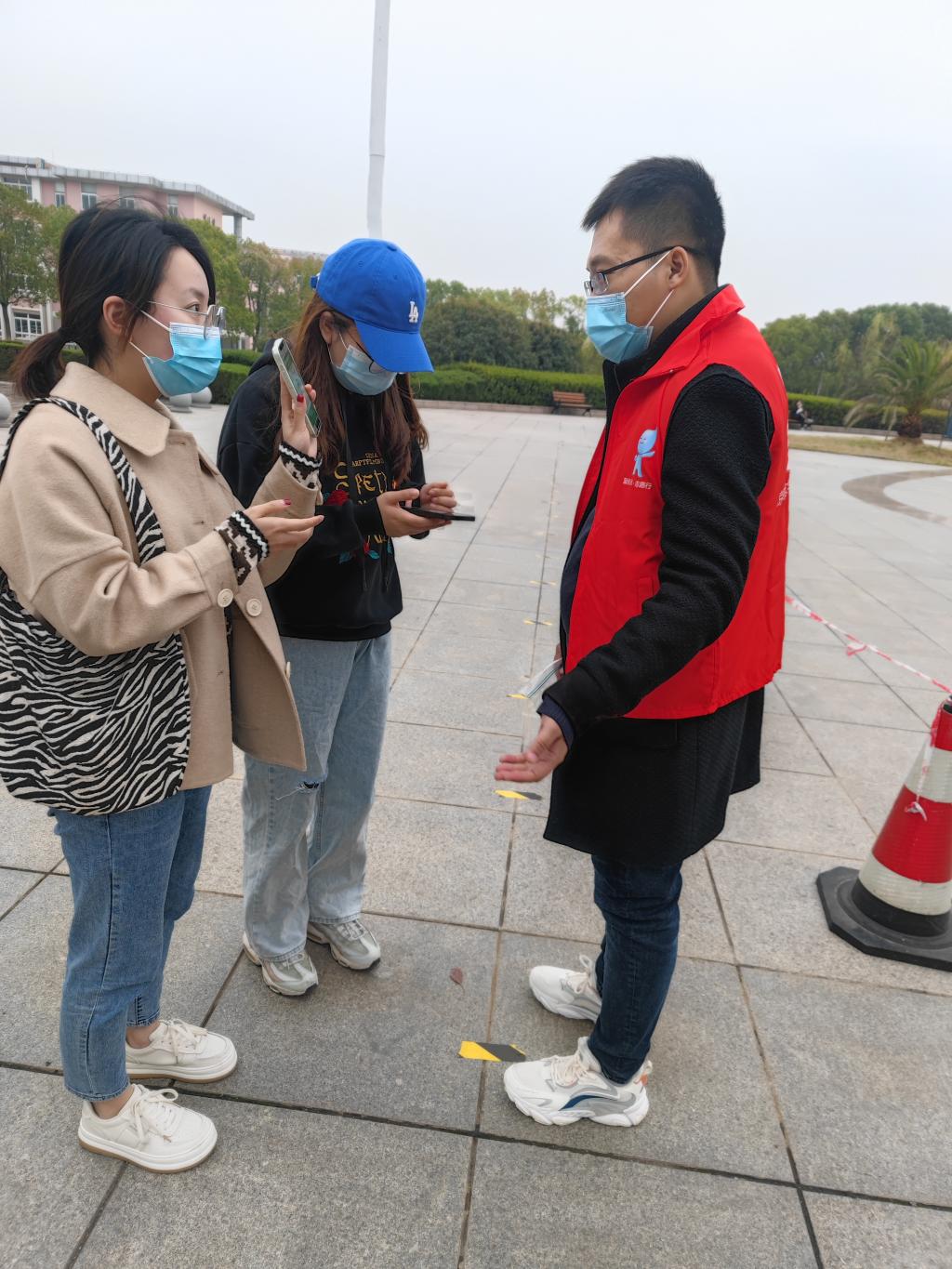 我院教师党员志愿者在大学生活动中心核酸检测现场