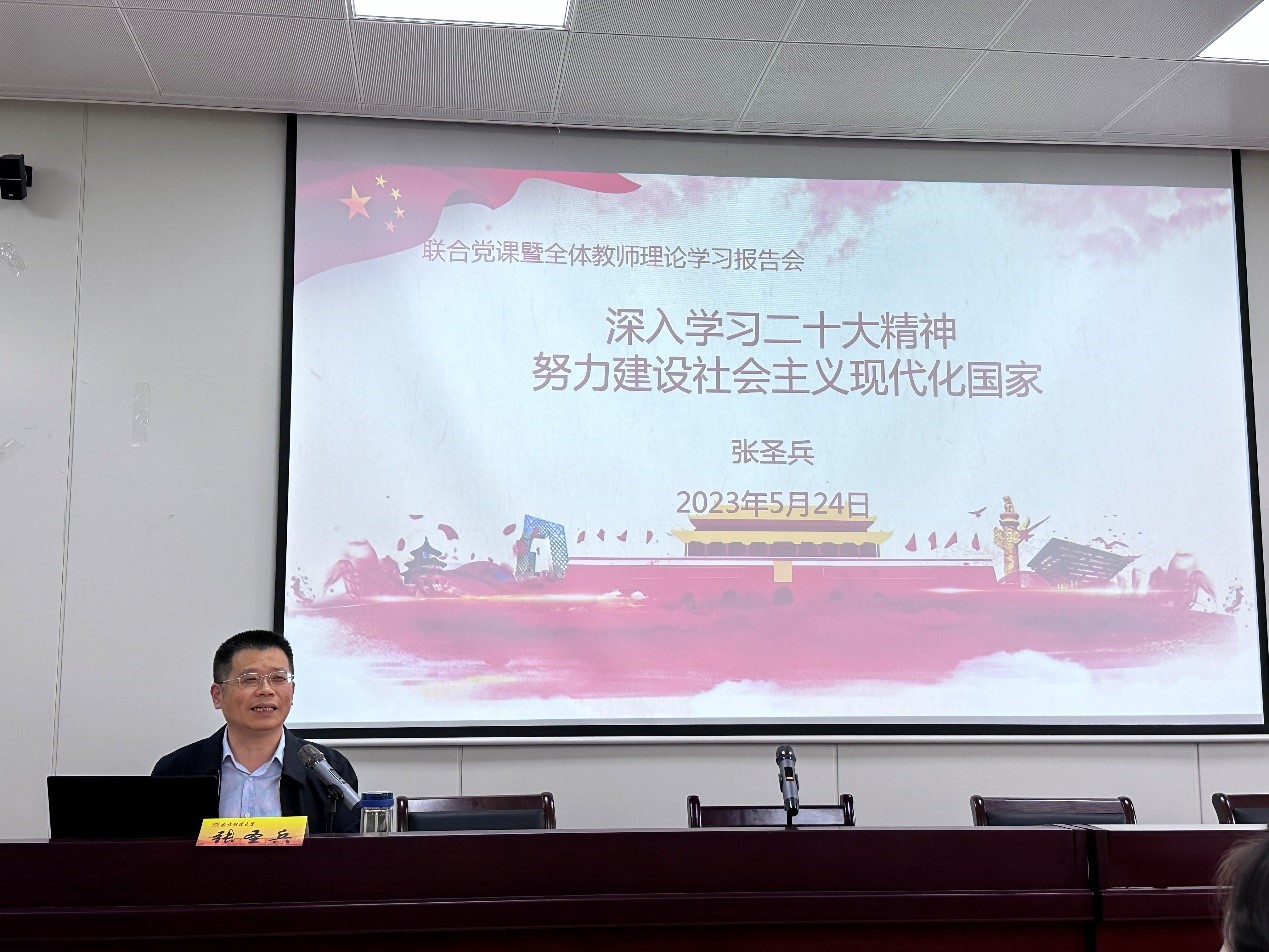 5月24日下午,我院在德经楼307会议室召开学习贯彻习近平新时代中国特色社会主义思想主题教育专题党课暨党建联盟共上一堂课。伟德国际victor·1946源自党委书记张圣兵教授做《深入学习党的二十大精神 努力建设社会主义现代化国家》专题党课,党委宣传部副部长秦韶华、学术期刊部副主任原小能、伟德国际victor·1946源自全体教工党员参加学习,党课由伟德国际victor·1946源自党委副书记贾亦璞主持。