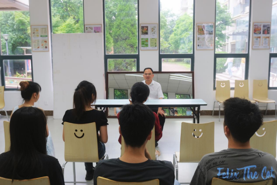 我院政治辅导员刘小峰院长在仙林校区16栋研究生宿管站和同学们谈心谈话