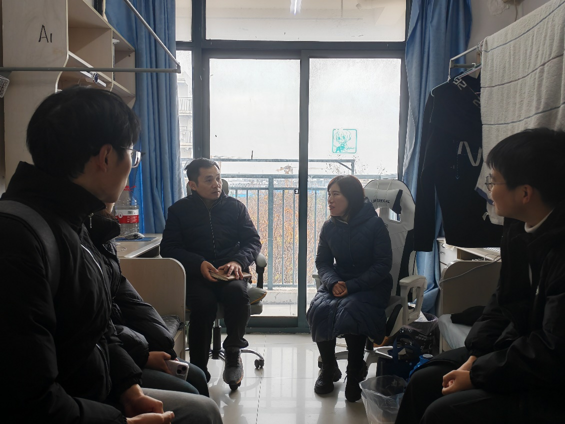 在走访过程中,韩中老师记录并一一解答了同学们关于学习、生活和校园安全管理等各方面的问题。对同学们提出期望,希望大家加强自我管理,落实安全用电的相关制度,保持整洁有序的宿舍环境。同时,鼓励同学们养成健康文明、积极向上的生活习惯,保持阳光开朗、乐于表达的良好心态。最后,还鼓励同学们珍惜在校时光,充分利用课余时间开展各种有益身心健康的科研、文体活动,留下丰富、充实、美好的大学时光。