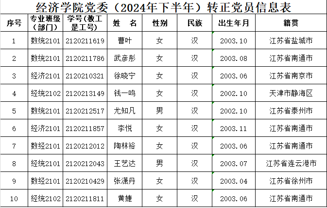在听取党小组和党员、群众意见的基础上,经支部委员会审查同意,近期将召开支部大会,拟同意曹叶等10名同志转为中共正式党员。根据发展党员工作有关要求,现将其有关情况公示如下: