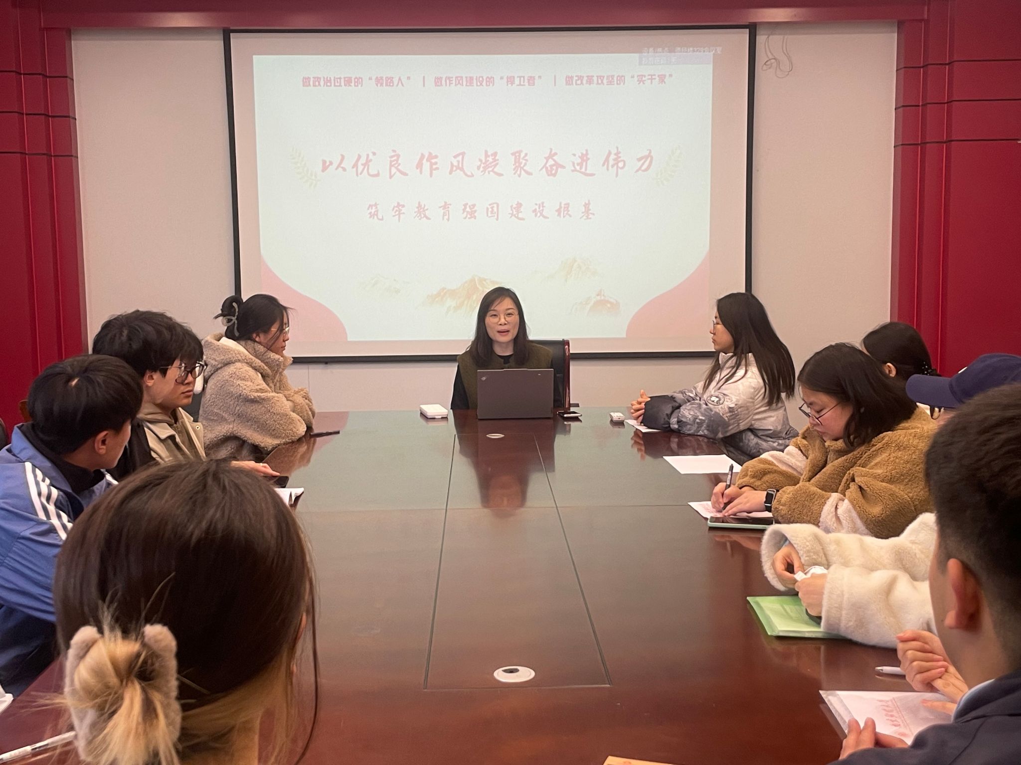 学院党委副书记、政治辅导员贾亦璞为“红苗学堂”一站式学生社区党支部党员讲授了深入贯彻中央八项规定精神学习教育的专题课程。