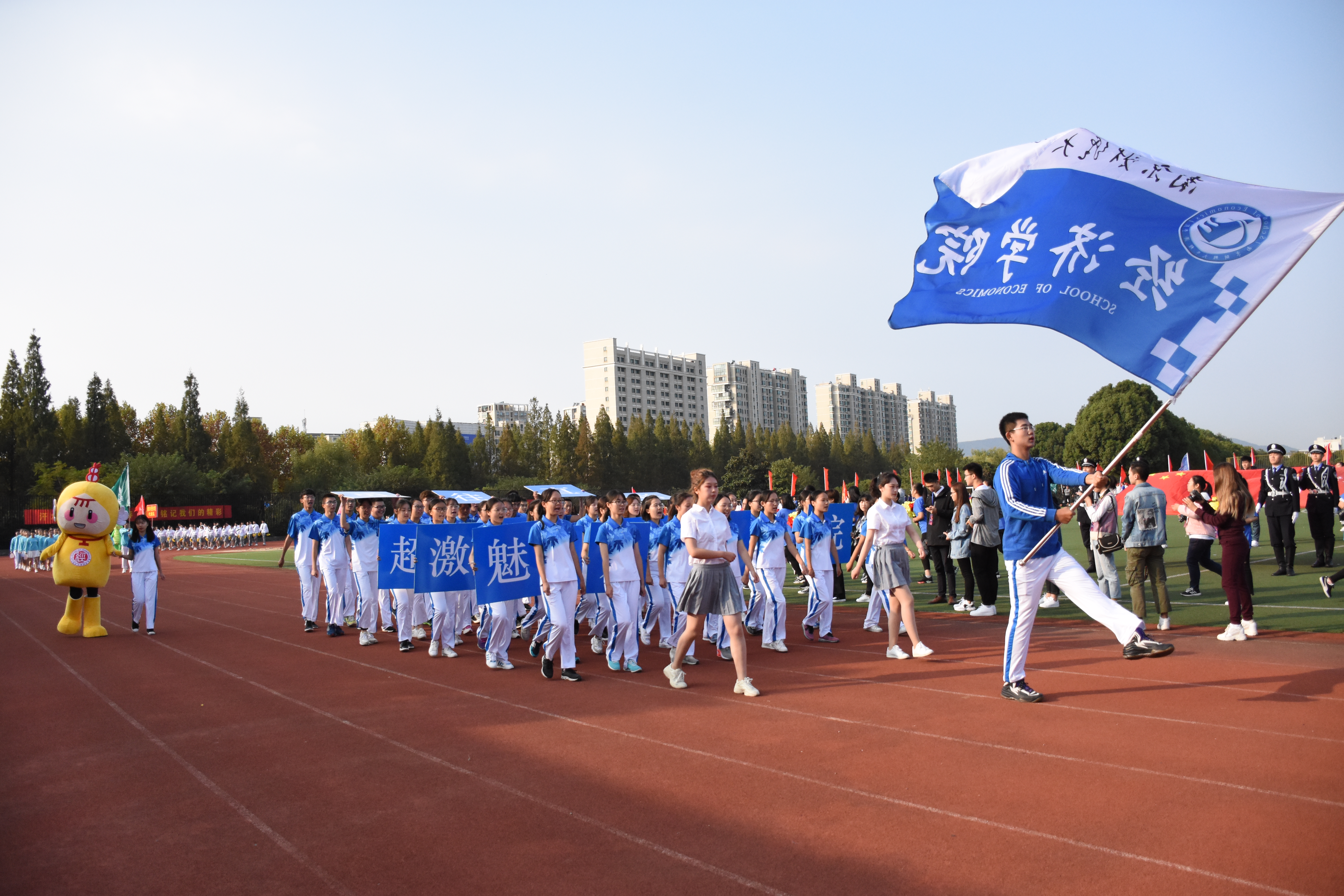 蓝天白云,风和日丽;呐喊阵阵,鼓声隆隆。 10月19下午,我校2018年田径运动会圆满落下帷幕。校领导程永波、黄建元、邱伟芬、张为付出席闭幕式,各职能部门和各学院负责人、运动会组委会委员和运动员代表参加了闭幕式。