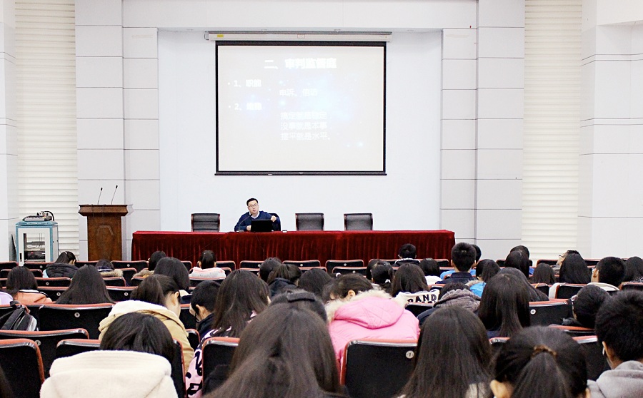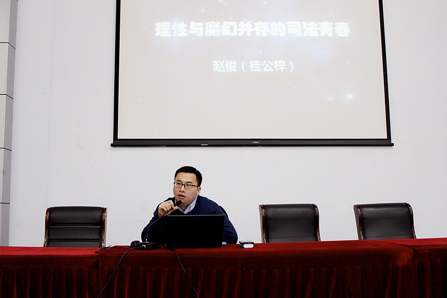 12月1日晚,应我院邀请,江苏省高级人民法院法官、作家赵俊先生在我校仙林校区经济学科楼报告厅作了题为“理性与魔幻并存的司法青春”的讲座。我校部分师生到场聆听讲座。