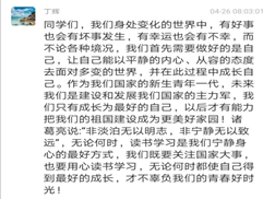 丁辉老师说:同学们,我们身处变化的世界中,首先需要做好自己,让自己能以平静的内心、从容的态度去面对多变的世界,并在此过程中成长自己。作为我们国家的新生青年一代,未来我们是建设和发展我们国家的主力军,我们只有成长为最好的自己,以后才有能力把我们的祖国建设成为更美好家园!