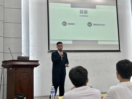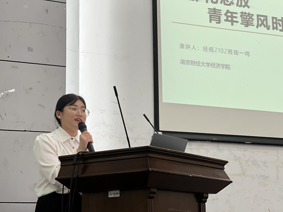 随后,由学生党员、第十一届南财好青年获得者纪齐围绕“好青年”作经验分享。他结合自身学习与实践经历,与大家分享了自己坚定信仰、矢志拼搏的经历,生动展现出青年的蓬勃朝气、昂扬锐气和浩然正气,激励经院学子们共同传承五四精神,实现自我价值,努力做胸怀理想、志存高远的新青年。
