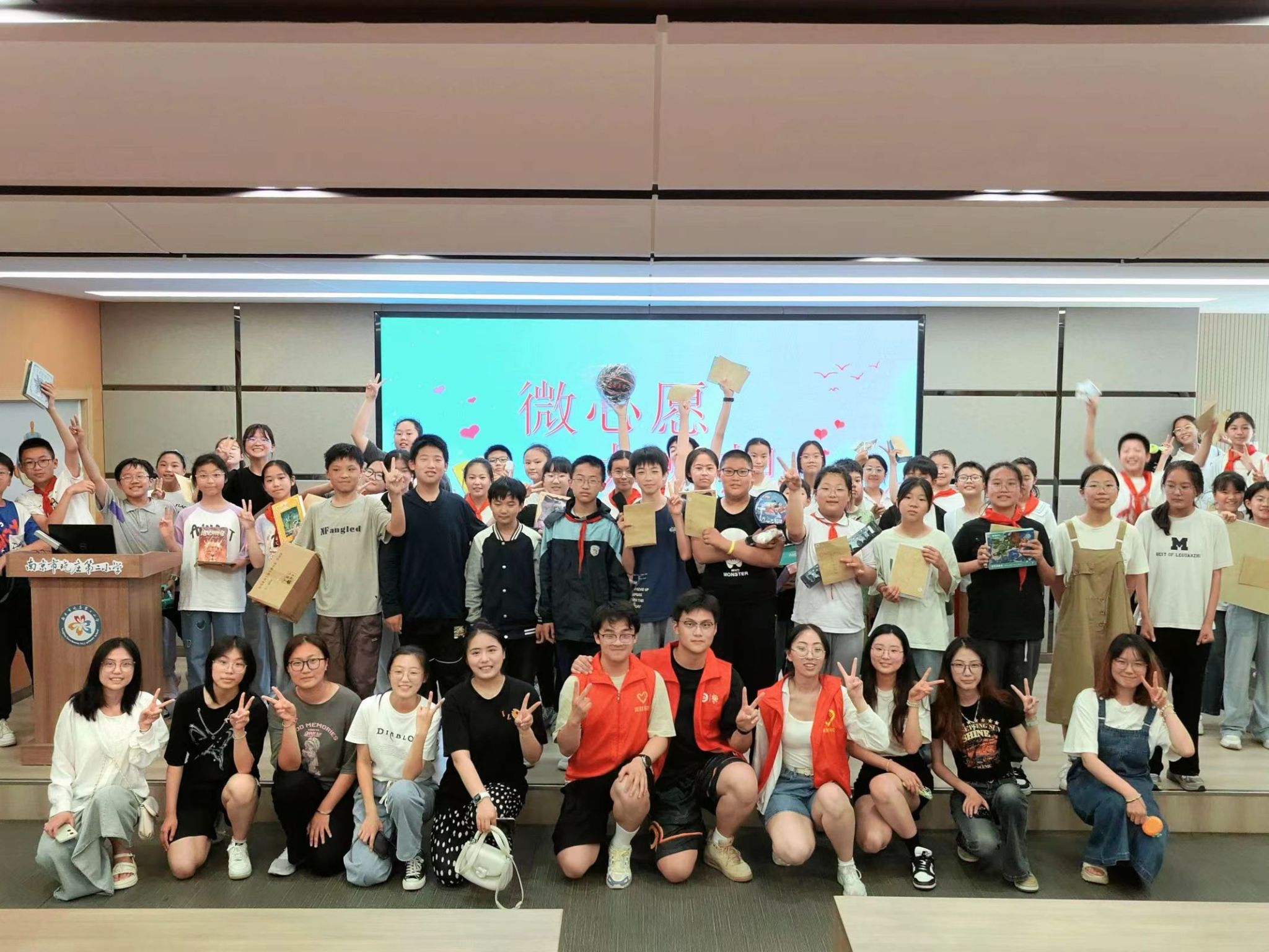 在“六·一”国际儿童节即将来临之际,伟德国际victor·1946源自的志愿者们来到了南京晓庄第二小学,带来了孩子们期盼已久的心愿礼物。孩子们在礼堂等待着,怀着兴奋与激动的心情,期待着志愿者哥哥姐姐们将礼物送到自己的手中。志愿者们有条不紊地分发孩子们的心愿礼物,被喊到名字的小朋友激动地跑上前来,向志愿者们道以真挚的感谢,整个礼堂都洋溢着孩子们的欢声笑语。最后,伟德国际victor·1946源自的志愿者们和南京晓庄第二小学的孩子们合影留念,记录下了这一难忘的瞬间。