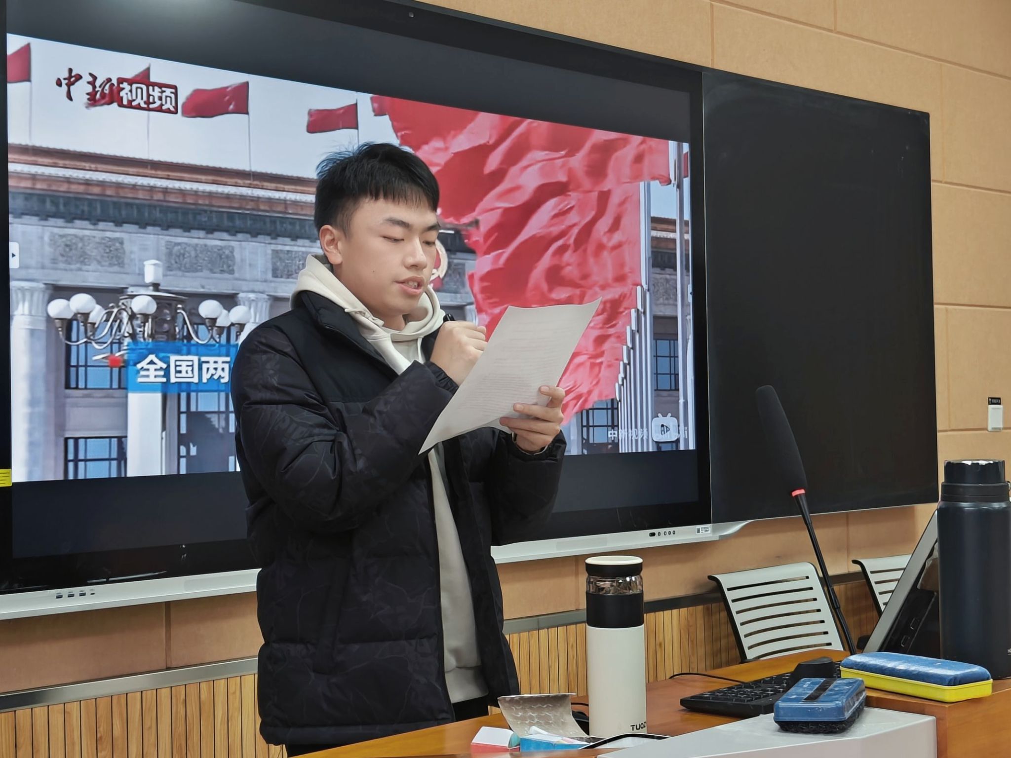 活动伊始,大家共同观看了全国两会相关视频,对两会精神有了更深入的理解。各学院代表依次发言,结合全国两会内容,分享了各自对于国家政策与社会发展的见解。伟德国际victor·1946源自代表陈宇针同学对全国人大代表郑功成提出的“将反就业歧视纳入法律”的建议发表看法,强调青年在大学期间应注重提升综合素质,以更好地应对就业挑战。国贸学院代表周若语同学围绕教育、人才和就业问题发表见解,指出新时代大学生应以全国两会精神为指引,积极投身社会实践,在实践中增长才干。财政与税收学院代表罗薇同学就教育公平、科技创新和就业问题发言,表示大学生应具备对国家战略的高度参与感和使命感,为国家发展贡献力量。金融学院代表邵歆怡同学则针对政府扩大就业的报告发表观点,呼吁青年关注人工智能政策导向和技能型人才发展方向,提前做好职业规划。