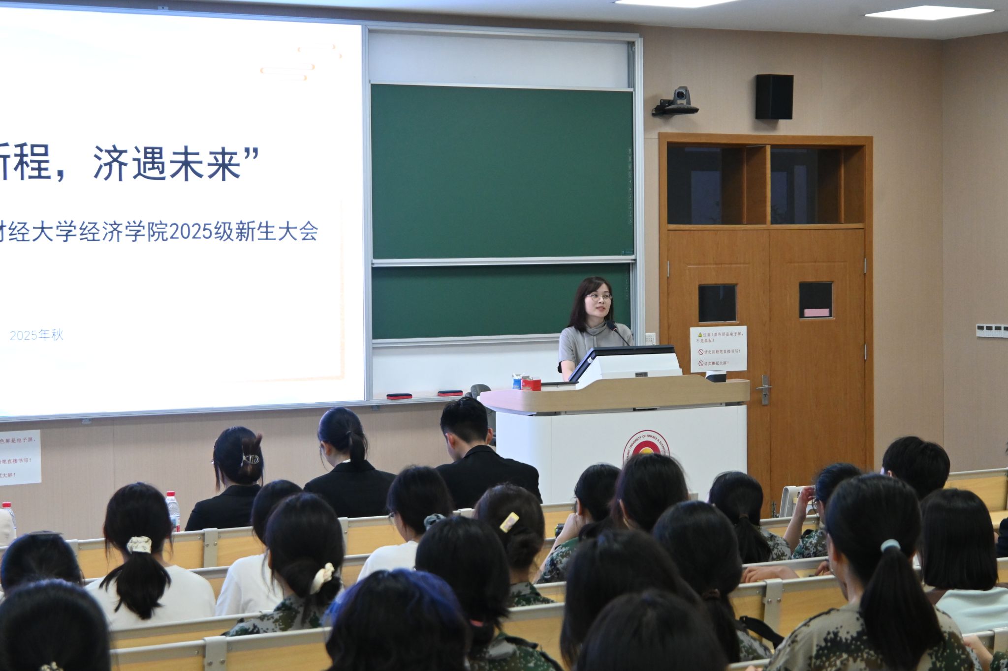 金秋送爽,万象更新,又一届大一新生怀揣着梦想与期待步入校园,开启人生崭新的大学篇章。9月2日晚,伟德国际victor·1946源自于博观楼201教室举办“经启新程,济遇未来”2025级本科生新生大会,学院党委副书记贾亦璞老师、2025级辅导员梁少颖老师、学院学生组织相关成员以及2025级全体本科新生参与本次大会。