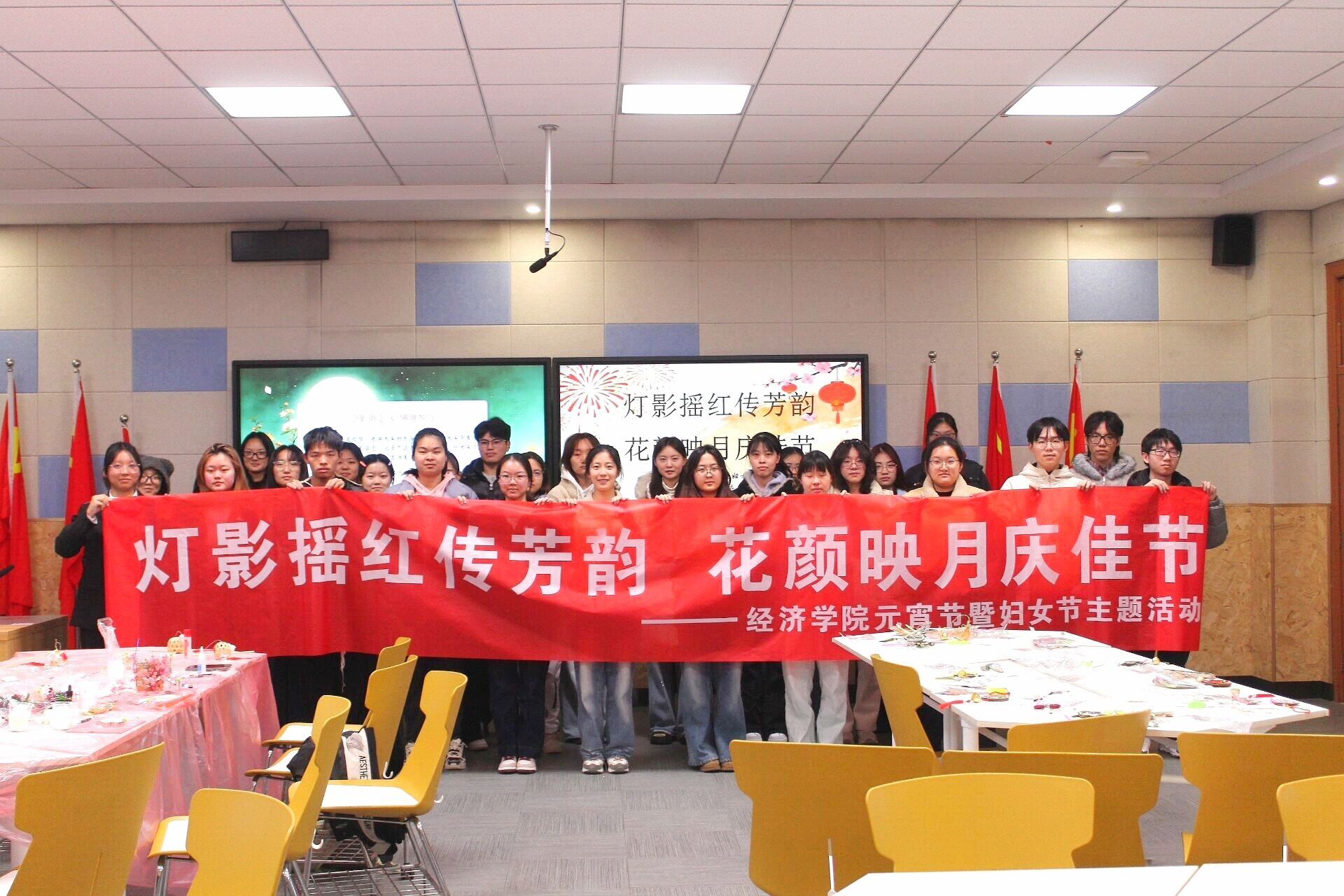 元宵灯影摇红,佳节暖意融融。为在团圆光影中传承民俗意蕴,礼赞新时代女性精神,3月5日晚,我院于博文楼101室开展 “灯影摇红传芳韵,花颜映月庆佳节”元宵节暨妇女节主题活动。同学们欢聚一堂,在团圆氛围中感受民俗魅力,汲取奋进力量。