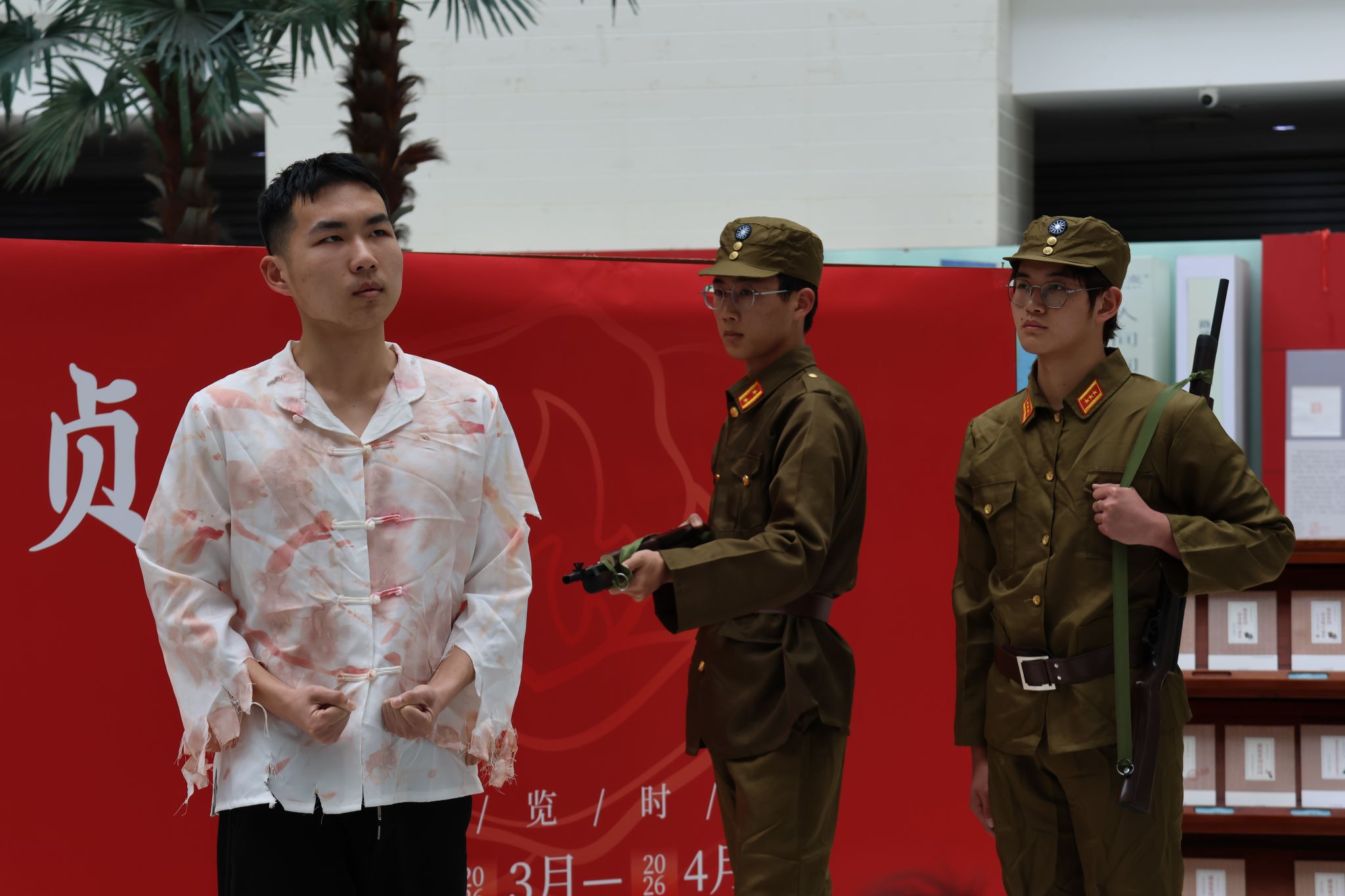 3月27日,由我校联合南京市雨花台烈士陵园管理局共同举办的“风雨情缘弥坚贞——雨花英烈的革命爱情”专题展暨雨花英烈事迹与精神丛书展在图书馆二楼大厅开幕。开幕式上,伟德国际victor·1946源自学生演绎了根据雨花台英烈罗登贤事迹改编的原创话剧《擎旗御侮:罗登贤》。该剧生动再现了罗登贤同志从领导东北抗日武装到组织工人学生斗争,最终在雨花台英勇就义的光辉一生。“我个人死不足惜,全国人民未解放,责任未了,才是千古遗憾!”舞台上,烈士的临终遗言铿锵有力,令在场师生无不动容。同学们以饱满情感塑造了有血有肉的英雄形象,深刻诠释了雨花英烈坚定信仰、不负人民的崇高精神。此次展演是学院深化馆校合作、赋能“大思政课”建设的生动实践。