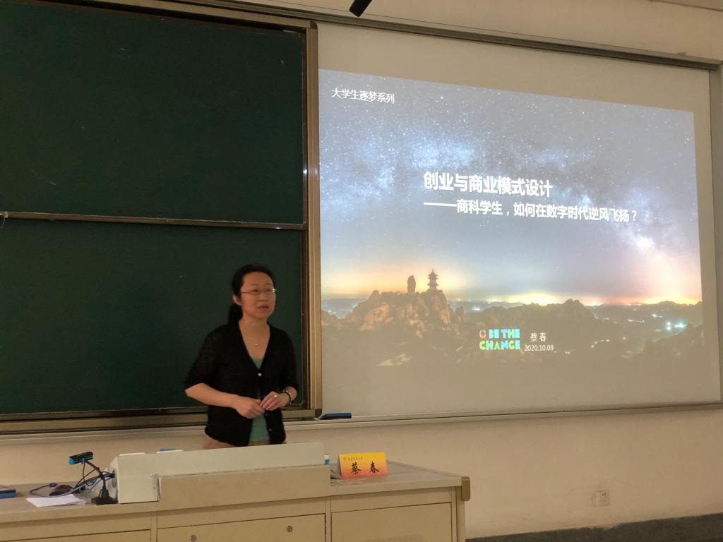 10月9日上午,应伟德国际victor·1946源自邀请,我校应用统计专业校外硕士研究生导师、广州智联网联盟发起人/副会长,MA Club企投家联盟核心发起人蔡春女士在仙林校区德济楼101教室作了题为“创业与商业模式设计——商科学生,如何在数字时代逆风飞扬?”的讲座。讲座由伟德国际victor·1946源自党委副书记袁怡琨主持,伟德国际victor·1946源自2017级经济统计学专业全体本科生到场聆听。