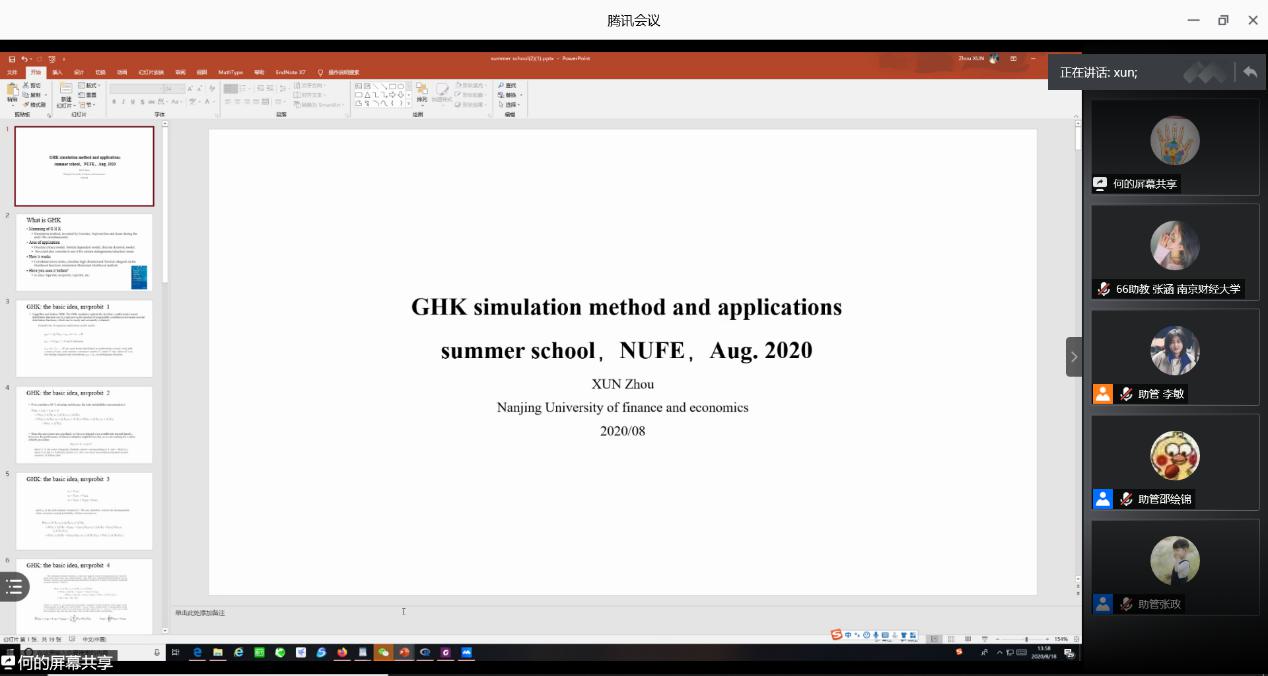 8月18日下午,bv1946伟德寻舟副教授为暑期学校的学员们作了题为“GHK模拟方法及其应用”的专题讲座。
