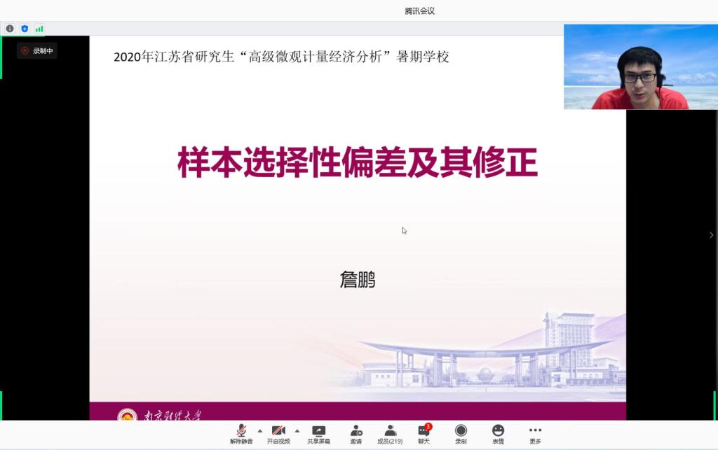 8月13日下午,bv1946伟德詹鹏博士为暑期学校的学员们作了题为“样本选择性偏差及其修正”的专题讲座。