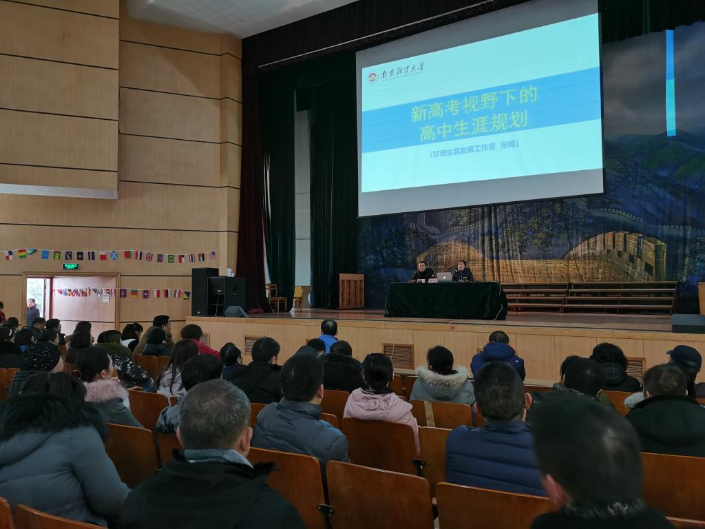 2021年,江苏省将启用新的高考招生制度。为了帮助高一、高二家长解读新版高考改革方案,12月21日,伟德国际victor·1946源自党委副书记袁怡琨老师带领招生咨询团队,前往我校优质生源基地——徐州市第一中学,走进该校“家长课堂”,开展主题为《新高考视野下的高中生涯规划》讲座,向高一、高二学生家长解读新高考政策,吸引200余名学生家长参加。