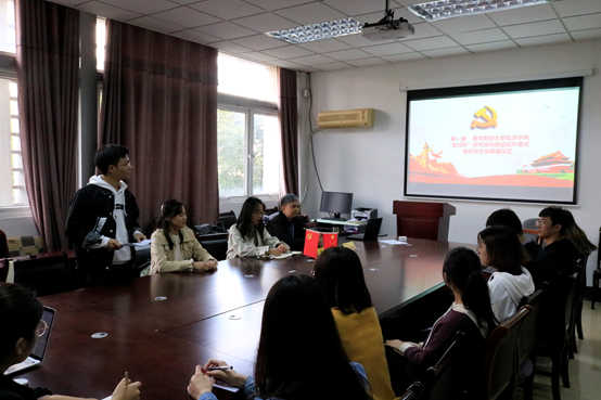 10月29日,我院研究生会换届大会暨第一届“紫经杯”研究生科技论坛开幕式在德经楼323会议室顺利召开。我院院长助理崔向阳教授、我院研究生秘书满原老师出席会议,院研会上一任主席周梦及本届研会成员参加。