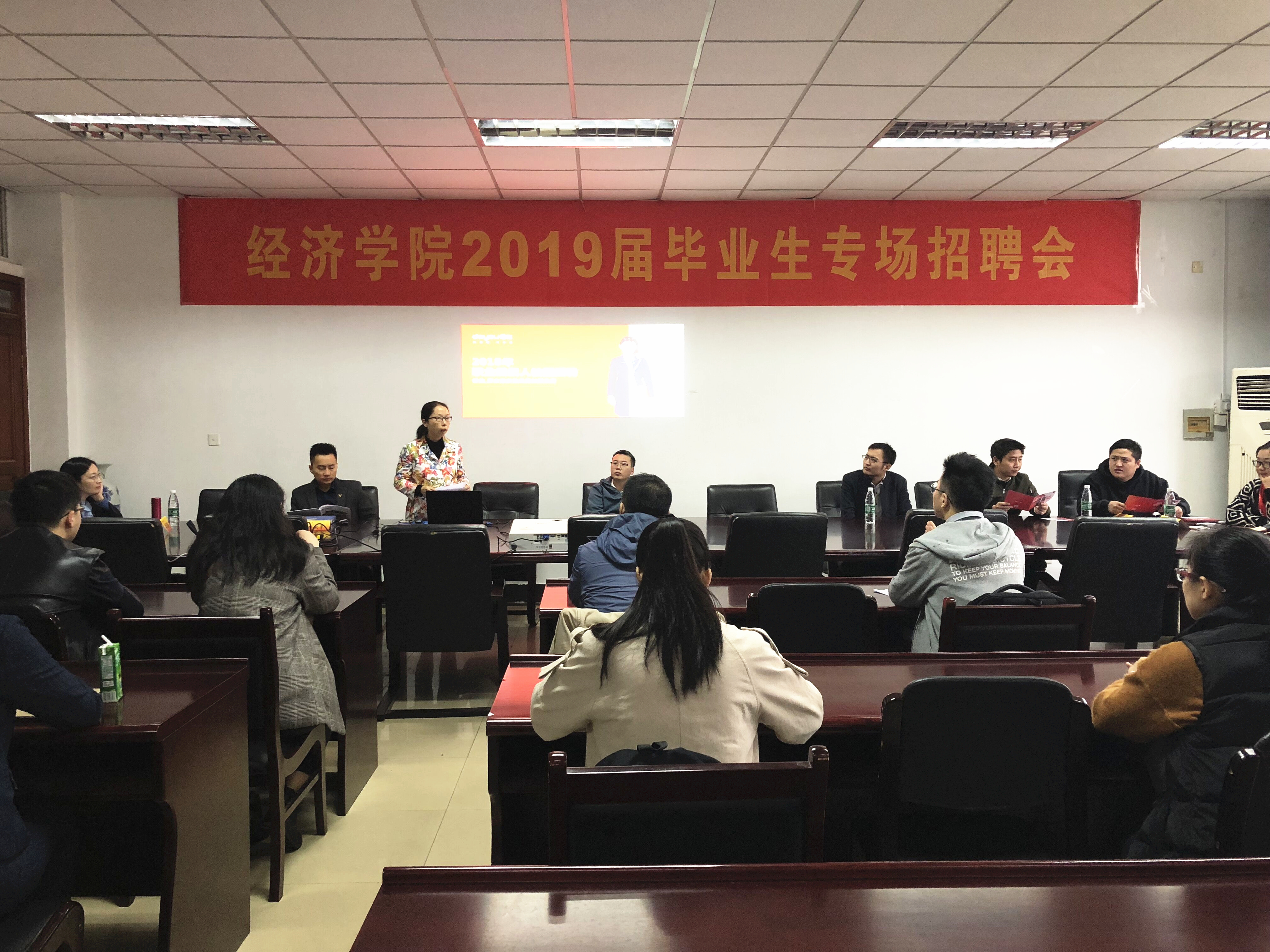 11月6日下午,我院在德经楼307会议室举办2019届毕业生专场招聘会,我院党委副书记袁怡琨、学工秘书尹海燕、毕业班辅导员徐昊翔和各个学院的2019届毕业生参加了此次招聘会,并与用人单位进行交流。