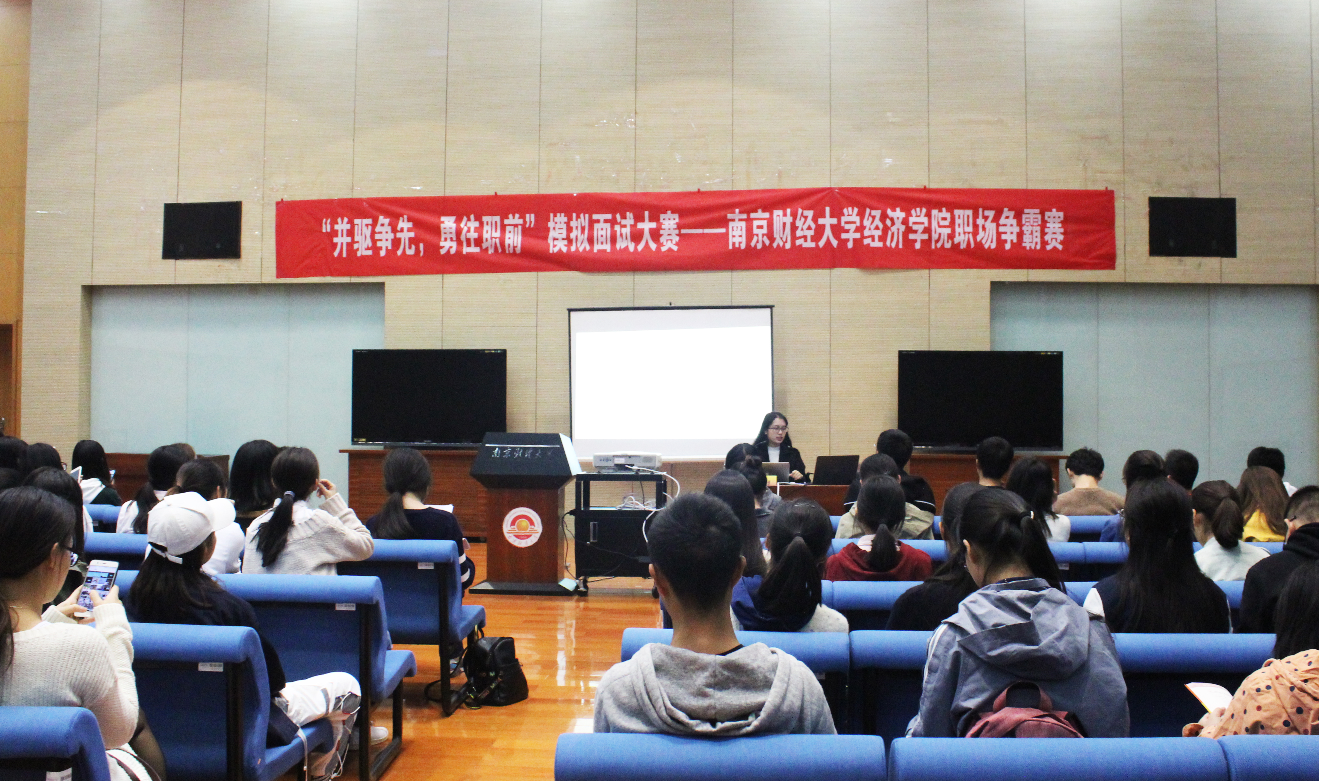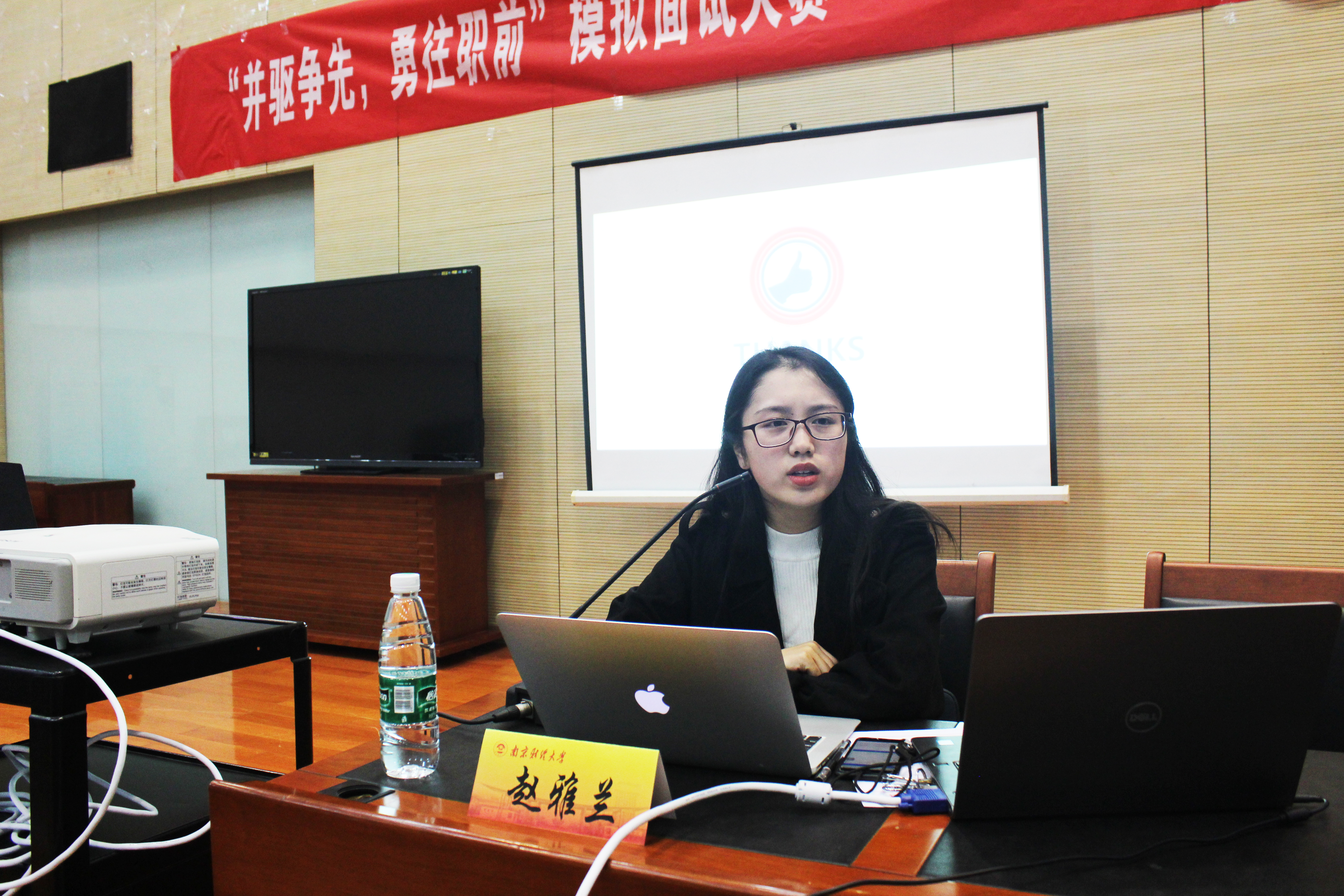 赵老师还为选手们就面试技巧、常见面试形式和注意事项进行了辅导,她通过短片的形式介绍了几种面试的基本内容,站在用人单位的角度提醒同学们应具备的基本素养和应答方法和技巧。