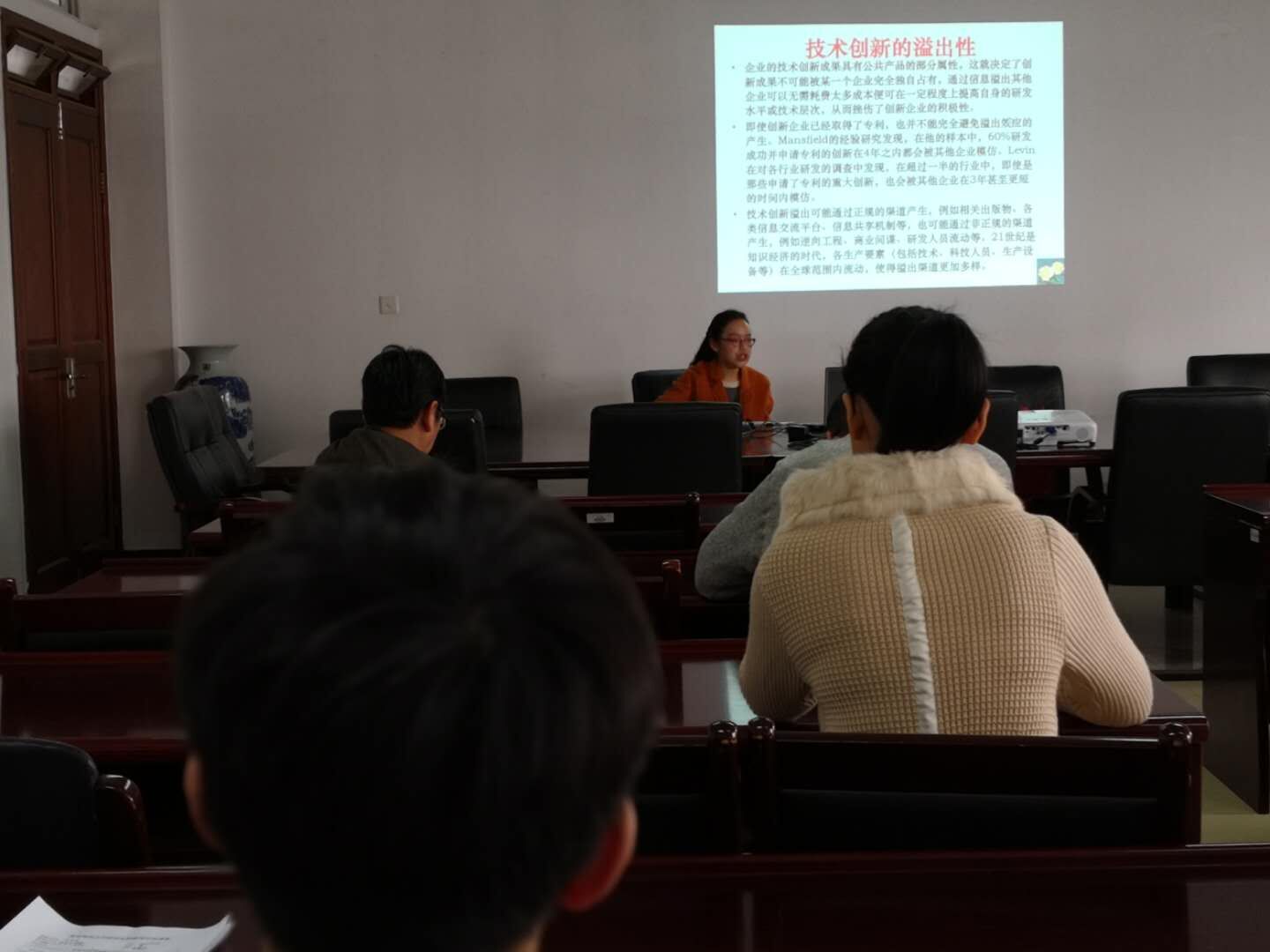 3月14日下午,我院统计系教师张艳芳博士就“企业技术创新策略选择”研究就行了报告。本次报告由学院副院长尹敬东教授主持。