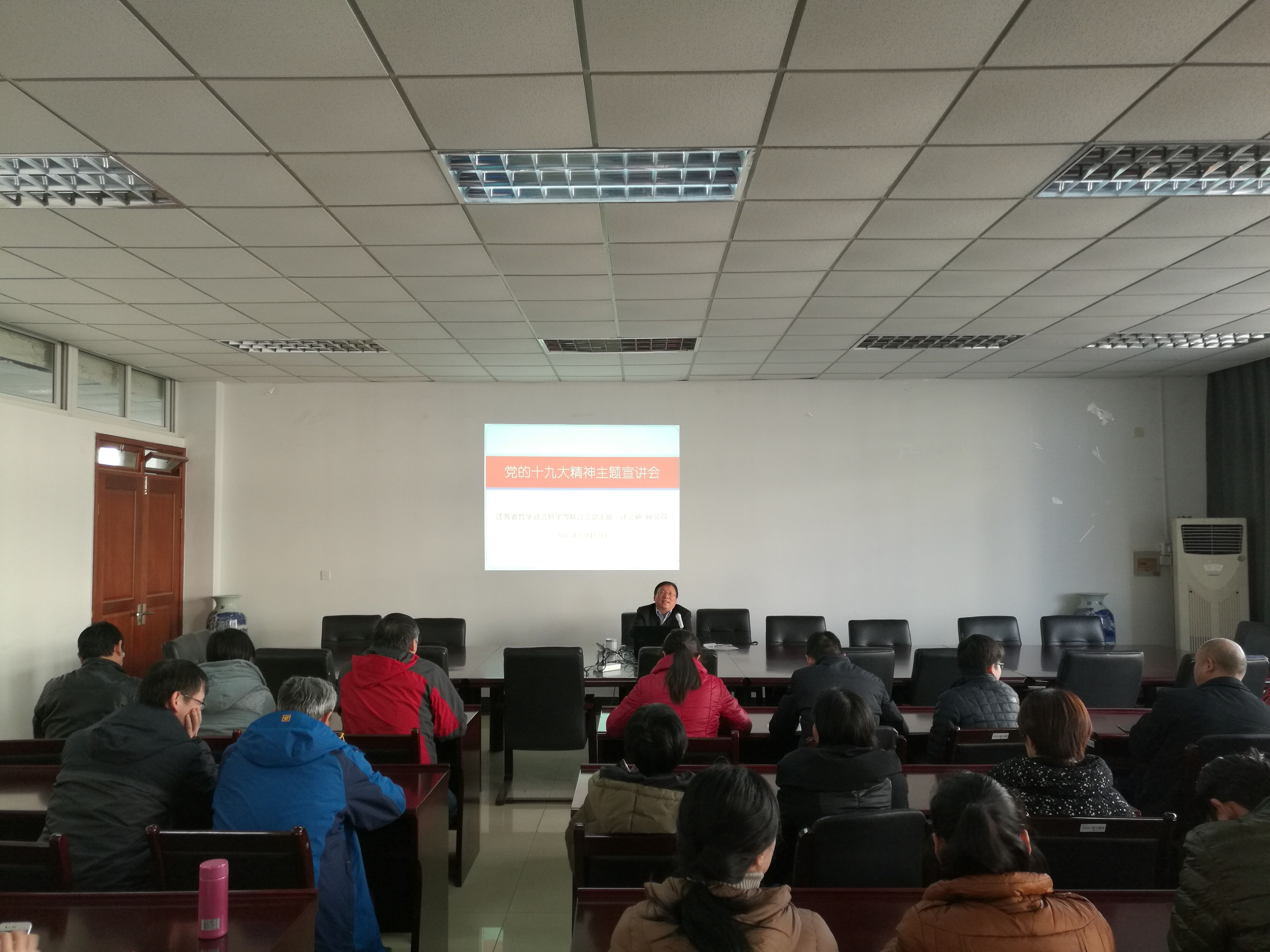 12月12日下午,我院德经楼307室举办学习十九大精神专题辅导讲座,邀请江苏省哲学社会科学界联合会副主席徐之顺主讲。讲座由我院院长石奇主持,我院全体教师参加了讲座。