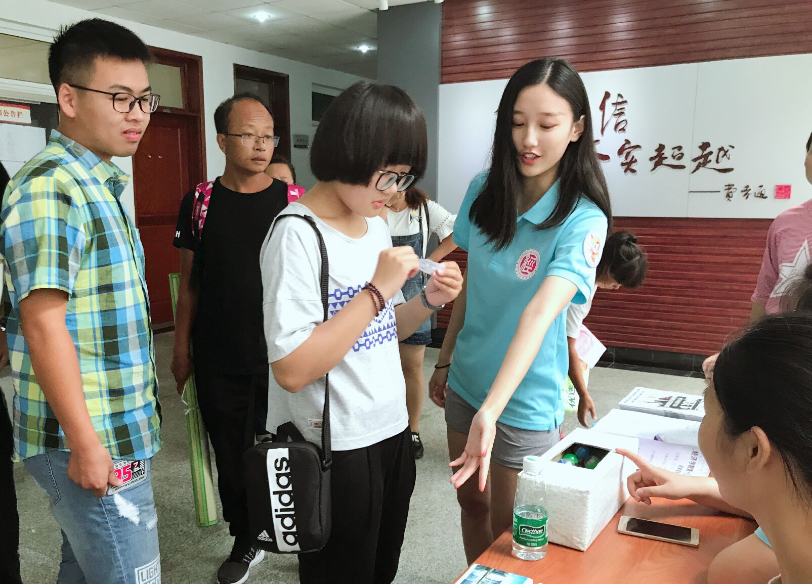 迎新现场,我院老师和志愿者们通力合作,以饱满的热情迎接新生和家长们的到来。志愿者们在引导新生报到的途中,帮助新生和家长提行李、拿包裹,为新生介绍校园环境、学院情况以及学习经验。
