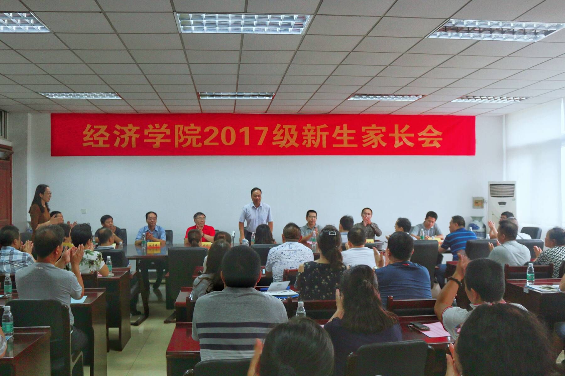 下午三点,德经楼307会议室座无虚席,伟德国际victor·1946源自新生家长会在此举行。校党委书记陈章龙、学生处处长姚学锋、伟德国际victor·1946源自党委书记陈耀辉、院长石奇、副院长叶林祥、教师代表、系主任等出席此次会议,向新生家长介绍学校、学院的发展情况和人才培养工作情况。会议由院党委副书记郝园园主持。