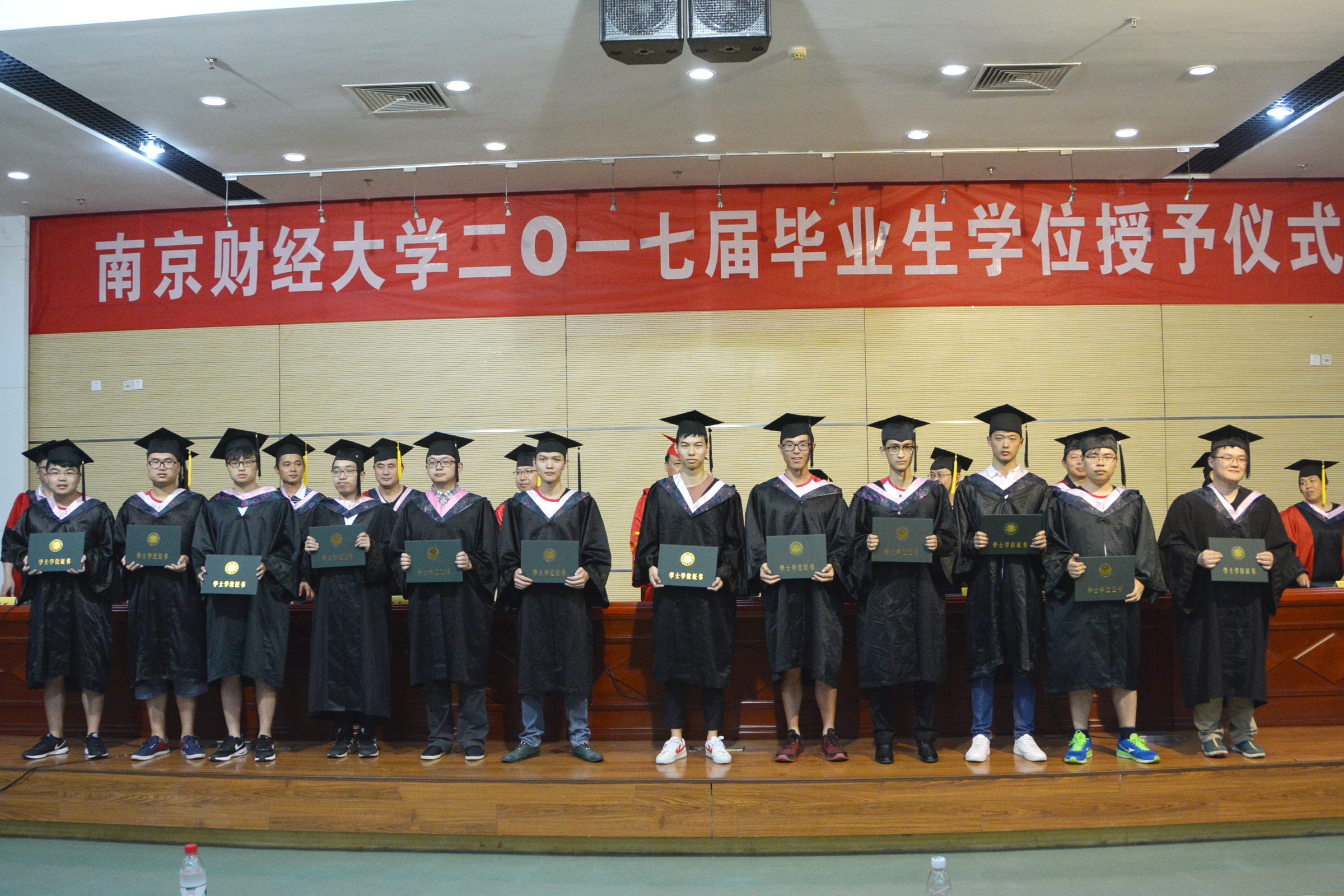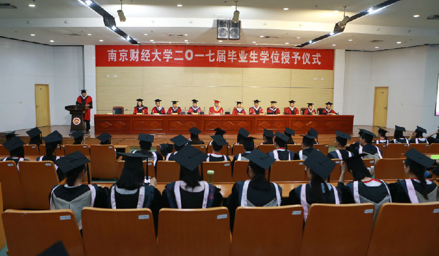 随后,尹敬东副院长宣读了《关于授予2017届毕业生硕士学位的决定》和《关于授予2017届毕业生学士学位的决定》。在明快的音乐中,2017届毕业生们依次上台。与会领导和老师们与毕业生们热情握手,为毕业生拨正流苏、颁发硕士学位证书和学士学位证书。