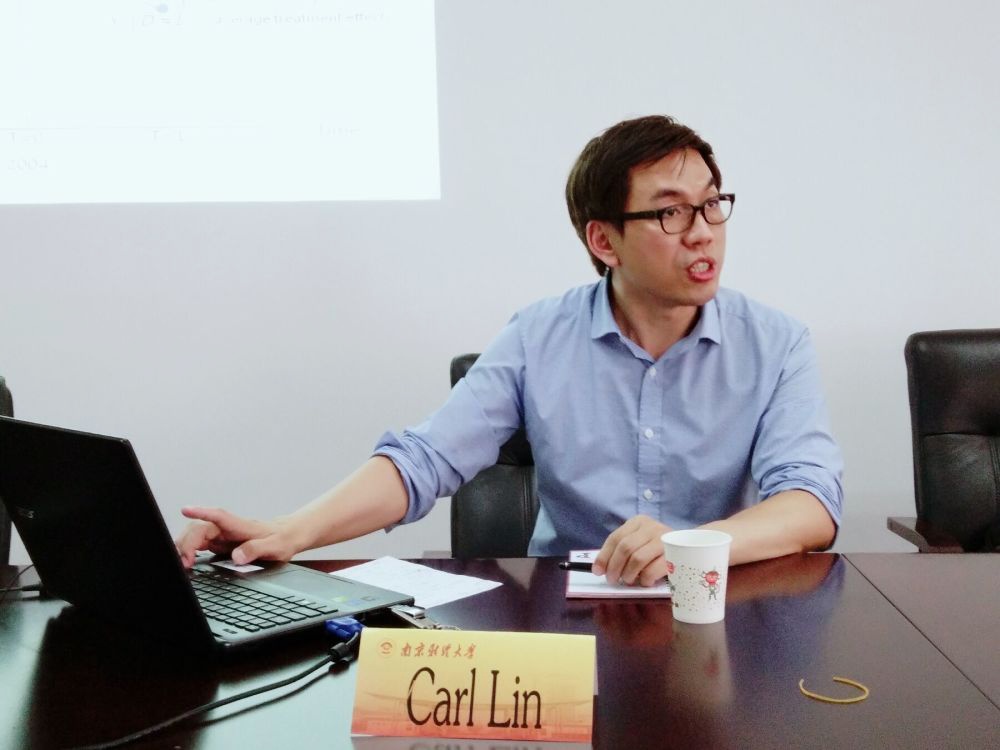 6月12日下午,应我院邀请,美国巴克内尔大学的Carl Lin助理教授林树明在经济学科楼307室作了题为“中国最低工资政策与城镇居民脱贫的影响” (Minimum Wages and Poverty Reduction in Urban China)的报告。报告由我院副院长尹敬东主持,我院部分教师和研究生参加了此次学术报告会。