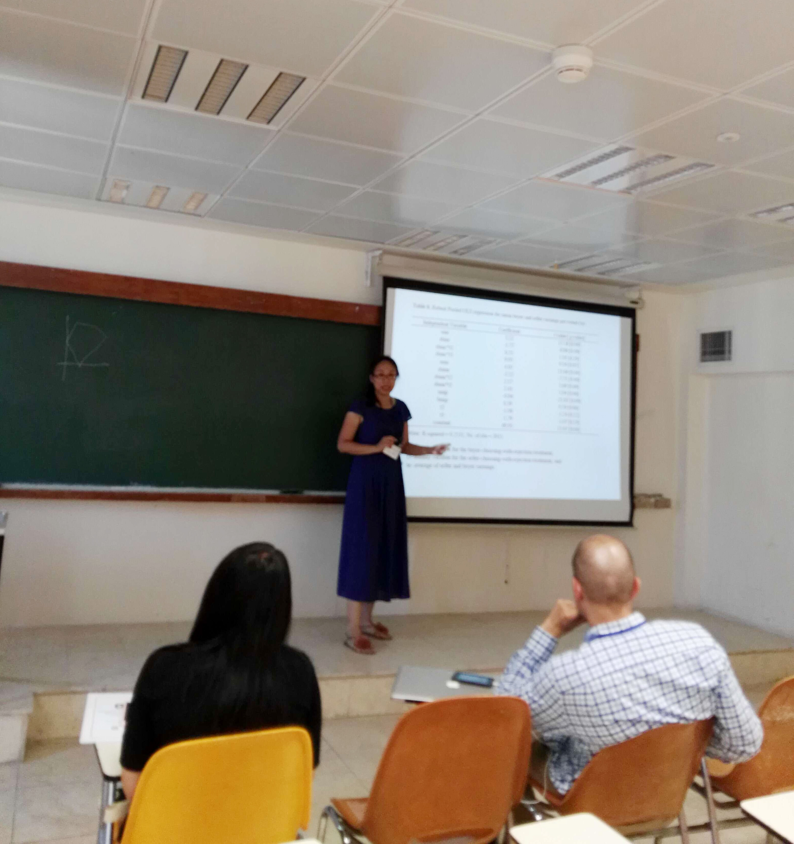近日,我院黄姗姗博士远赴以色列耶路撒冷参加2016年经济科学协会世界大会,并作题为“互惠原则在内生匹配型双边谈判中作用机制的实验研究”报告。