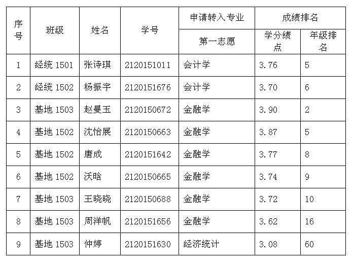 2016年7月5日 2015级本科生转专业第一志愿申请学生名单汇总表