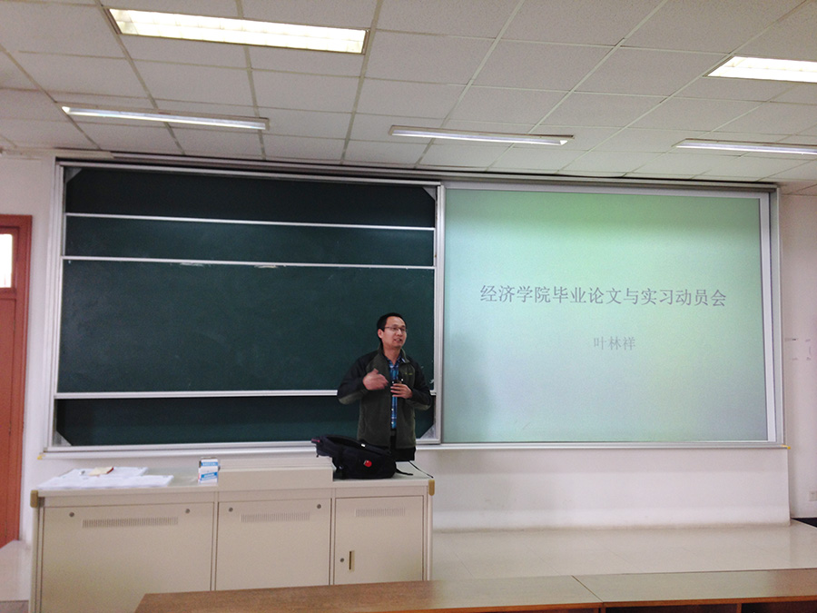 为了提高同学们的毕业论文写作能力,提升专业素养,11月2日上午,我院在教C203教室召开年级大会,就2016届毕业年级毕业论文写作、毕业实习及就业考研等事宜做出安排。我院副院长叶林祥教授,辅导员尹海燕老师参加了此次大会。