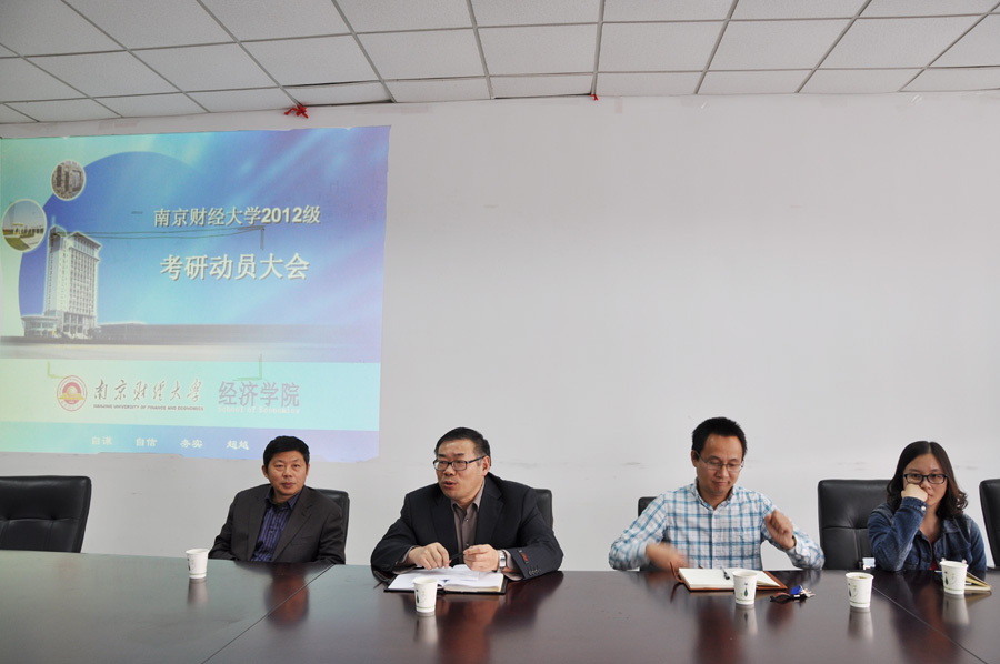 为帮助我院考研学生了解2016年最新考研政策及动态,增强备考信心,10月19日下午,我院在经济学科楼307会议室召开2016届考研动员会。本次动员会邀请了副院长陈耀辉教授、副院长叶林祥副教授,以及王庚教授和王万珺老师。领导老师们就考研形势、专业特点以及各自的经验与同学们进行面对面交流。