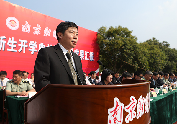 9月19日下午,我校2015级新生开学典礼暨军训成果汇报大会在仙林校区西苑运动场隆重举行。全体校领导及江苏省军区副参谋长鞠鑫、承担此次军训任务的解放军临汾旅教官出席大会,有关职能部门和学院主要负责人,我校3700余名2015级本科新生参加了开学典礼暨军训成果汇报大会。