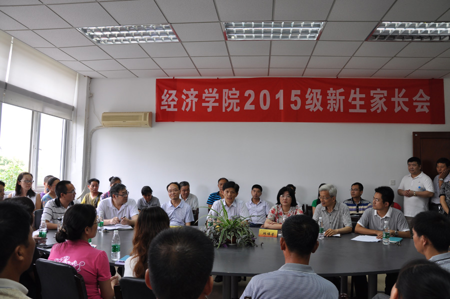 紧接着,副院长叶林祥向新生家长们介绍了学院概况、专业设置及特色、教学安排等内容。周绍东、王芳老师分别就经济学、经济统计学专业的师资力量、专业建设、课程设置、学生发展等方面的内容和家长们进行了详细介绍。