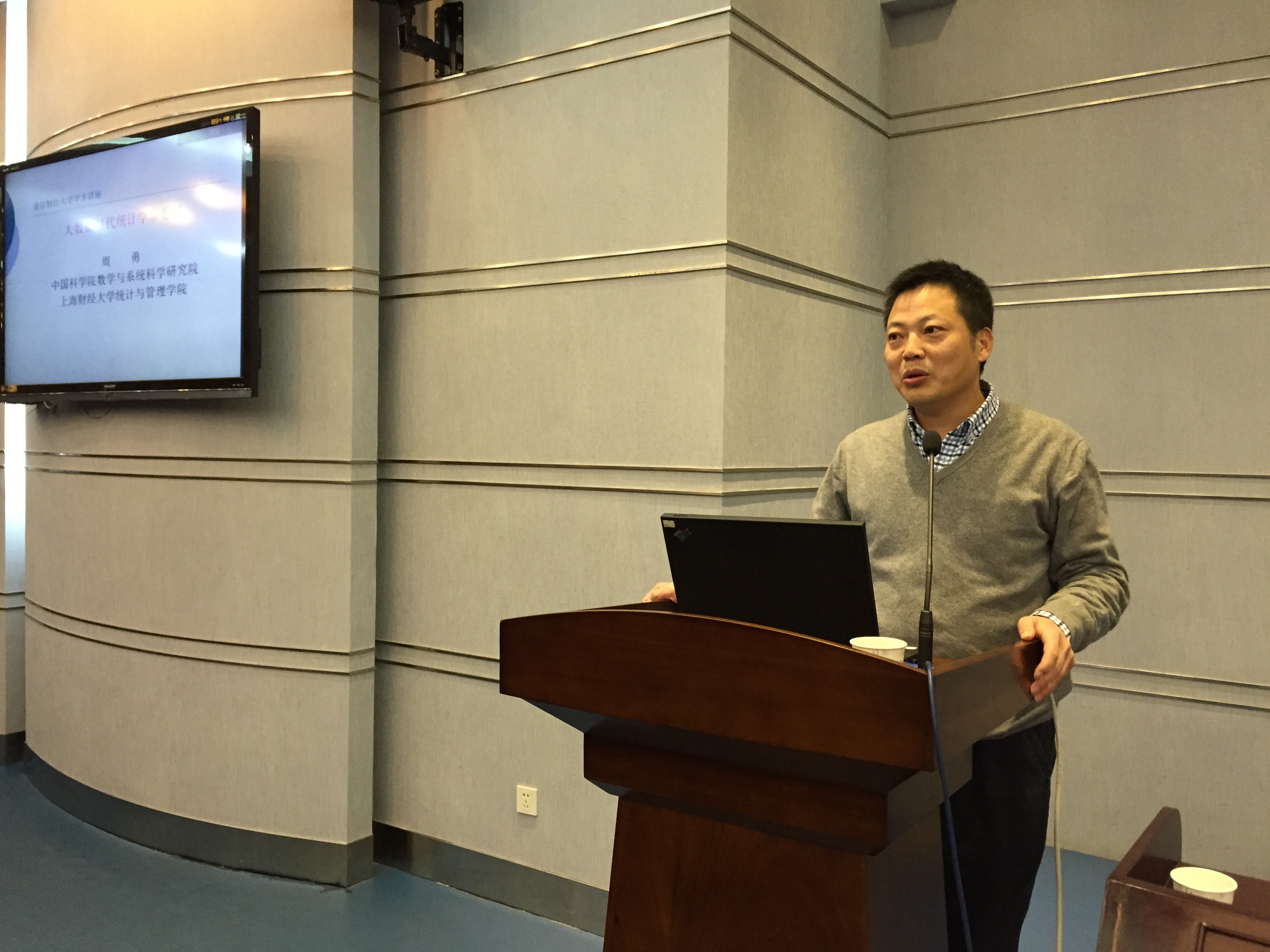 12月11日下午,中国科学院数学与系统科学研究院研究员、上海财经大学统计与管理学院院长周勇教授应邀做客南财论坛,在仙林校区行政楼二楼报告厅为我校师生作了题为“大数据时代统计学家思考”的报告,副校长华仁海主持了报告会,并代表学校向周勇院长颁发了客座教授聘书,陈耀辉副院长(主持工作)、尹敬东副院长、叶林祥副院长出席了报告会。