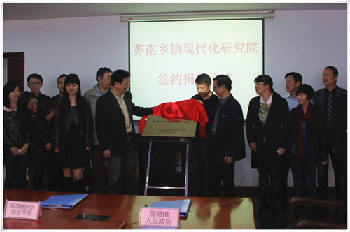 11月2日上午,由伟德国际victor·1946源自与苏州市相城区渭塘镇人民政府合作共建的“苏南乡镇现代化研究院”正式签约揭牌。签约揭牌仪式在渭塘镇政府会议室举行,伟德国际victor·1946源自党委书记胡荣华,渭塘镇镇长夏赵云共同主持了研究院的签约揭牌仪式。