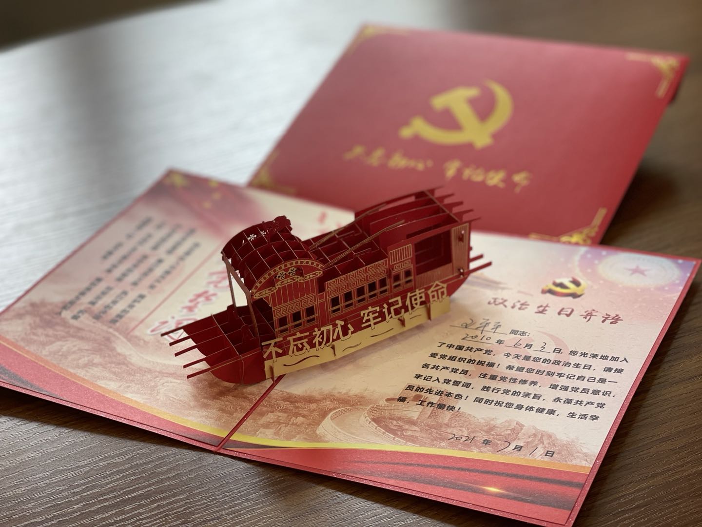 院党委书记陈耀辉同志向过政治生日的同志赠送贺卡与勉励