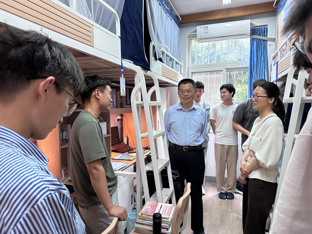 在学生宿舍,张圣兵书记和同学们亲切交流,了解学生们的学习生活情况与思想动态。他介绍学校学院关心关爱学生、助学生成长成才的各项措施,了解当前情况下同学们的学业、生活、心理等方面的困难,倾听同学们的意见和建议。张圣兵书记希望同学们确立目标,找好大学学习方向,珍惜时间,做好大学学业规划,克服困难,走稳走好大学之路。要不负青春,不负韶华,不断奔跑,奋力拼搏,争取跑出当代青年最好的成绩。