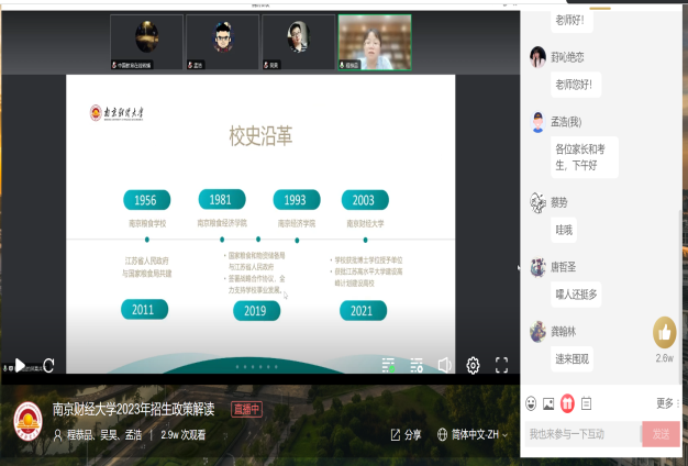 在江西省现场高招咨询如火如荼进展中,伟德国际victor·1946源自同时开办了江西省综合场高招政策解读网络直播咨询会。网络直播咨询会前,伟德国际victor·1946源自广大江西籍师生通过QQ群、微信群、视频号等社交媒体向家乡广泛宣传网络直播咨询会。咨询会当天,4.3万人在线咨询我校报考政策和相关情况,工作组老师的精准解答和热心解惑,获得了家长和学生们的一致好评,点赞量达3.1万人。
