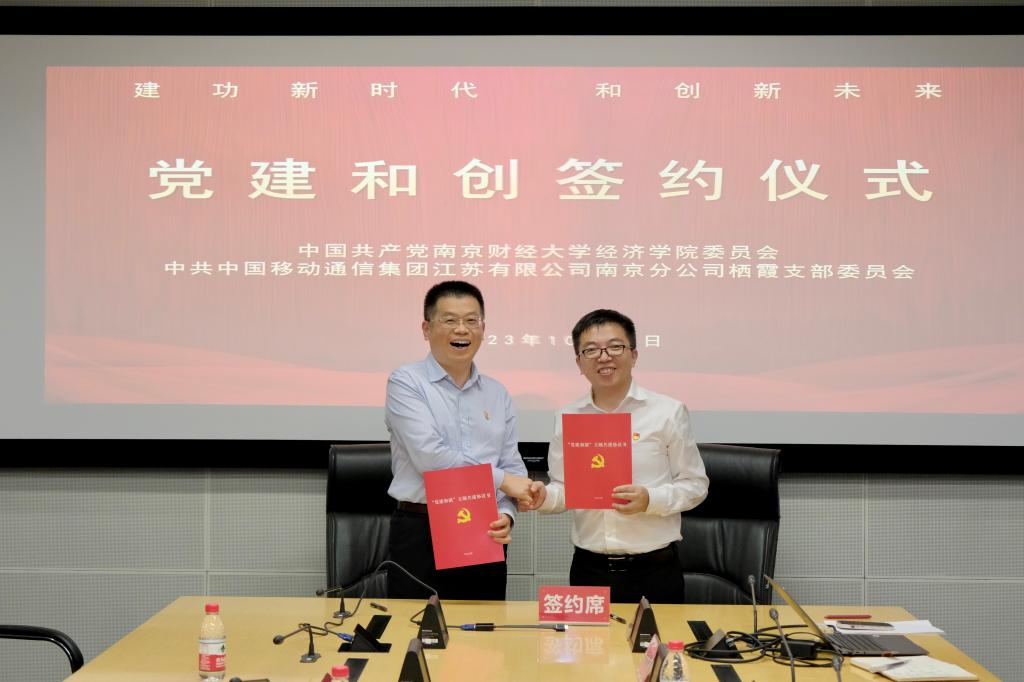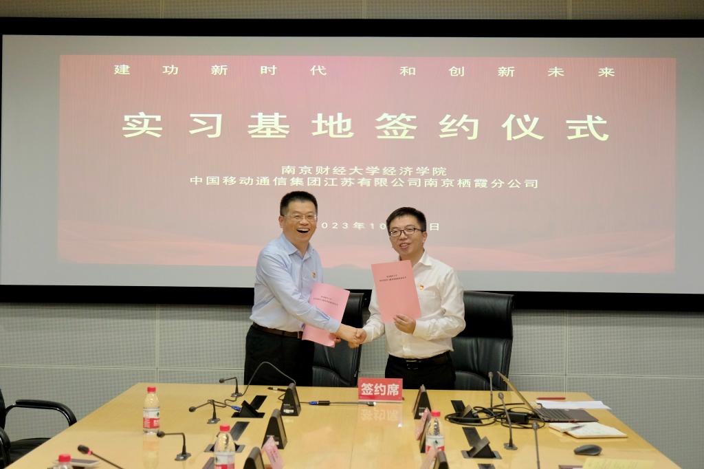 双方在江苏移动创新中心会议室座谈交流。在座谈会上,张圣兵书记表示,到访江苏移动创新中心是一次非常宝贵的交流机会,感谢南京移动对伟德国际victor·1946源自多方面工作的支持。校企交流合作既是创新驱动发展的大势所趋,也是推进产教融合的的重要动力。人才的培养离不开高校的理论教学,更离不开企业的切身实践。在数字经济飞速发展的时代,学院将深入贯彻落实科教兴国战略、人才强国战略和创新驱动发展战略,着力培养学生理论联系实践的能力,激发学生创新能力和创造潜力,发挥培养人才主力军的作用。陆放总经理谈到,校企合作项目是对南京移动的高度认可和极大信任。在新时代、新征程上,内外部环境发生了深刻变化,公司的发展需要更多具备复合型潜能的人才,希望将来可以和南财伟德国际victor·1946源自不断拓展合作空间和内容,在多方面加强深层次合作。向军主任以“党建和创”为主题,介绍了南京移动的党建情况,期待双方充分发挥资源优势,加强交流对接,开展党建共建、理论同学、组织共建活动,以此次结对共建为契机,实现共建双方的发展共赢。双方就产学合作、人才培养、学生就业等内容进行了深入交流,达成了持续深化校企合作、打通人才培养和产学研融合通道,实现共赢发展的共识。双方签订了党建共建协议书和实习就业基地建设协议书。