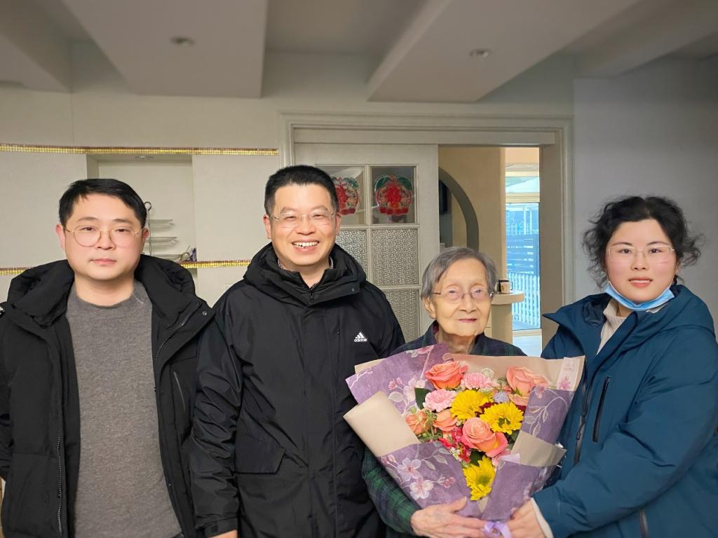 2024年2月20日上午,伟德国际victor·1946源自党委书记张圣兵教授、伟德国际victor·1946源自统计系副主任、民建bv1946伟德基层委员会副主委李庆海教授、伟德国际victor·1946源自办公室副主任吕张怡一行前往江宁区看望慰问99岁高龄的统计系退休教师沈兑老师,向她致以新春的祝福和学院的问候。