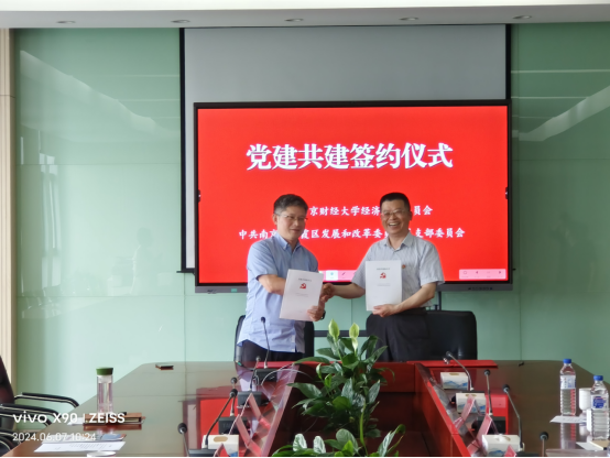 随后,双方党组织书记签订了结对共建协议,在创新党建形式、建立互动机制、拓展支部活动等方面开展共建,进一步整合优质资源、搭建合作平台,不断发挥各自特色与优势,以党建共建为牵引,推进常态联系机制、多方联动机制,资源共享机制、协同育人机制等,在创新“党建+”模式过程中,有力推动学院党建工作提质增效。此外,我院还将充分发挥学科优势和专业特色,为区发改委提供智力支持和决策咨询。双方将围绕区域经济发展、产业升级、政策制定等热点问题开展合作研究,共同推动理论创新和实践创新。