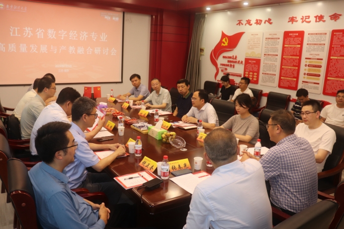 2024年7月5日伟德国际victor·1946源自329会议室成功举办数字经济专业高质量发展与产教融合探讨会。此次研讨会邀请了众多开设数字经济专业的院校代表及业界的资深专家共同参与,旨在深入探讨和推进数字经济专业教育的前沿发展,以及如何培养符合新时代需求的数字化经济人才。与会专家包括:上海财经大学数字经济系副系主任肖升生,泰州学院经济与管理学院院长朱军,苏州大学数字经济与贸易系副主任葛新宇,扬州大学经济系主任时磊,经济系副主任陈杰、陈拼博,宿迁学院王亚宁,以及新道科技股份有限公司的业界代表。我校教务处处长朱红根、伟德国际victor·1946源自副院长(主持工作)刘小峰、数字经济系系主任华中昱、副主任孟浩以及部分教师代表参加会议。