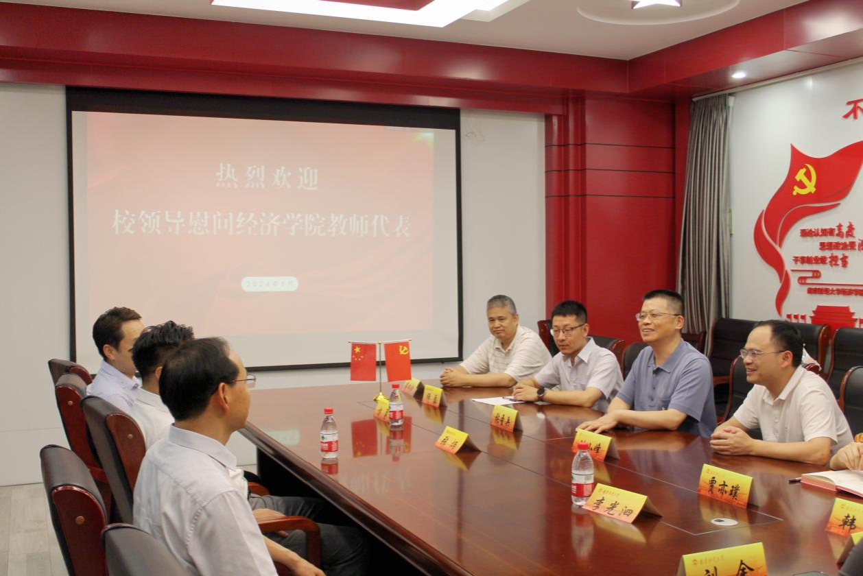 张炳副校长一行与学院领导、教师代表相聚座谈,对学院近年来在科学研究、学科建设、团队建设、本科教学等各方面取得的成绩给予高度肯定,并对学院下一步的教学、科研、人才培养和社会服务等工作的开展,提出了指导性意见。院党委书记张圣兵着重指出新进教师培养的关键意义,并倡议全体教师以身作则,传承优良教师文化,营造尊师重教的浓厚氛围。副院长(主持工作)刘小峰代表学院感谢校领导的关怀。他表示,学院将在教学、科研、人才培养和社会服务等方面持续发力,以强烈的责任感与使命感积极投入工作,为学校高质量发展贡献才智、增光添彩。