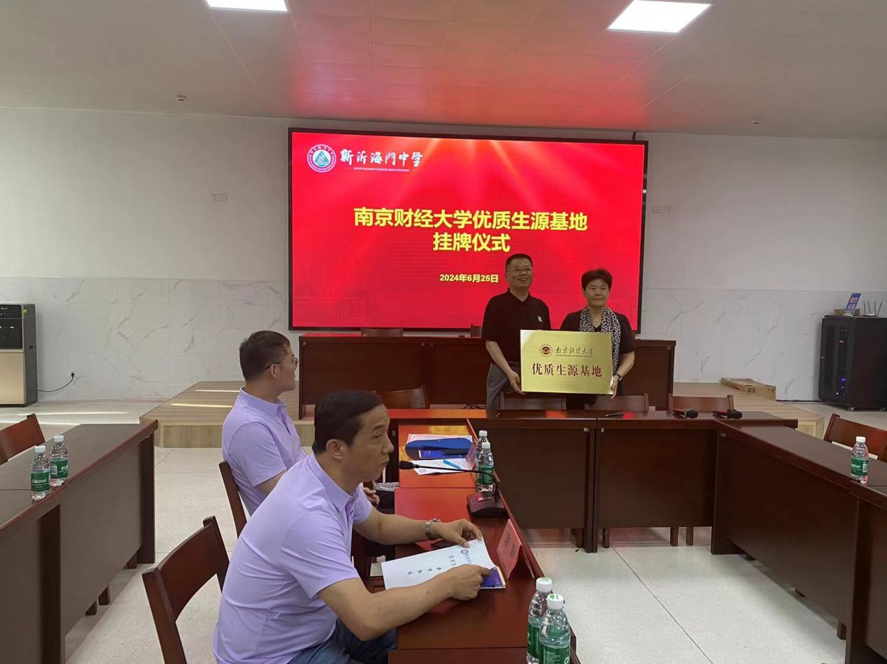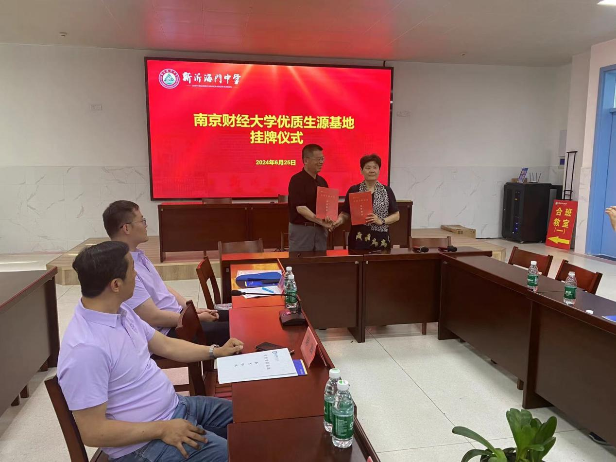 最后,张圣兵书记与王美华校长签订了生源基地共建协议,并授予了新沂海门中学铜牌。