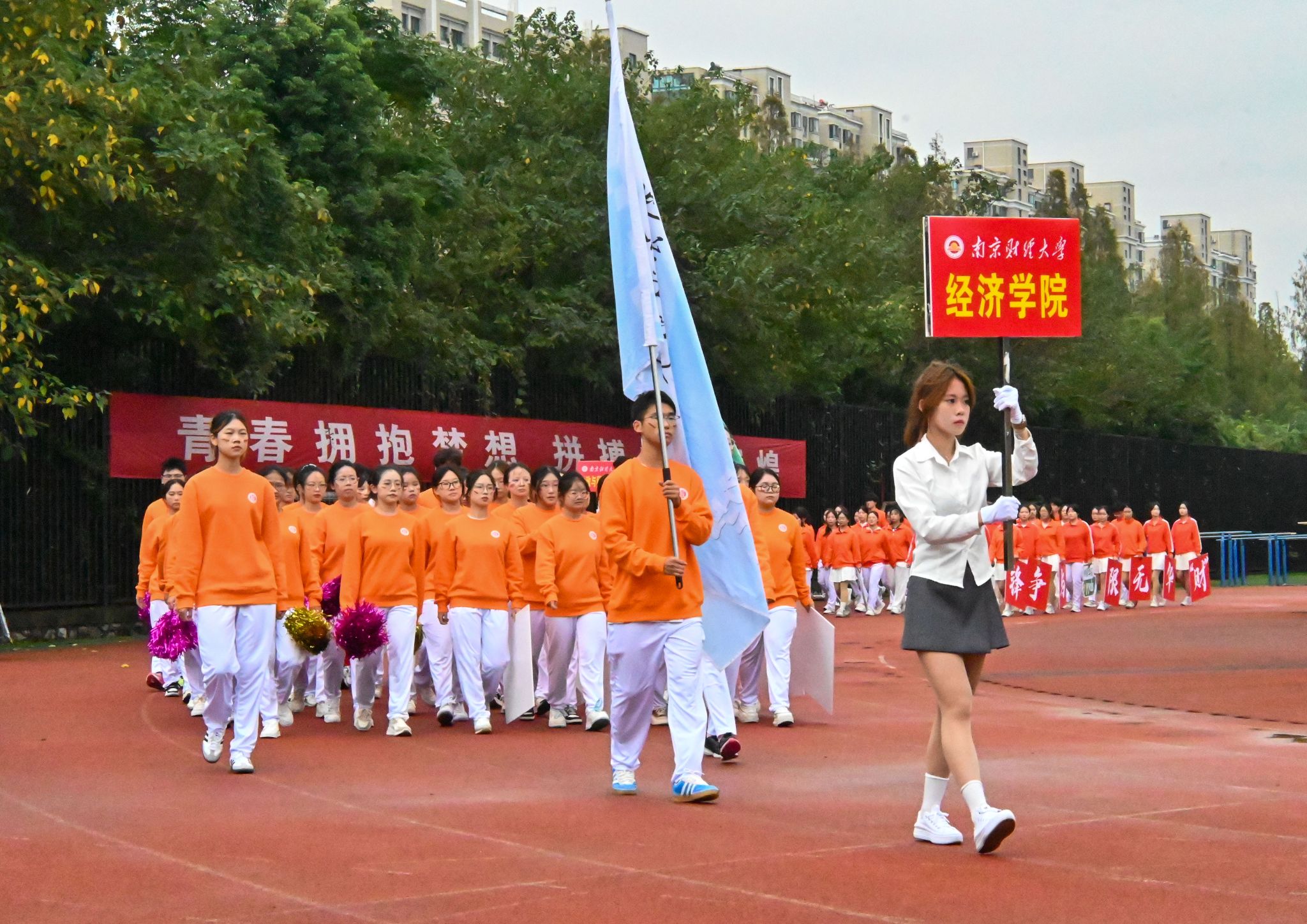 开幕式上,金秋的阳光闪烁着温暖的光芒,旌旗猎猎预示着一场激情澎湃的盛典即将开始。伴随着激昂的进行曲,伟德国际victor·1946源自方阵的同学们昂首阔步地向主席台走去,步伐整齐地展示着他们朝气蓬勃的精神面貌。“经世济民展风采,携手同行创未来;竞技场上显身手,拼搏赛场铸辉煌”,经院方阵的口号响彻云霄,奋进激昂。