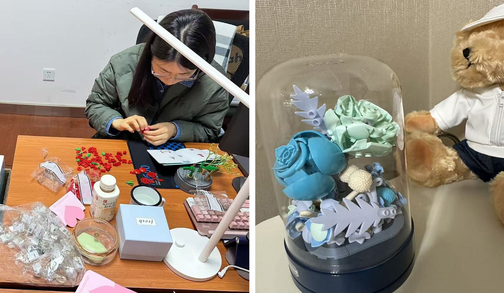 在春意盎然的三月,为庆祝劳动妇女节,伟德国际victor·1946源自工会于3月10日举行“芳华永驻·匠心育人”主题庆祝活动,为全校女教职工送上精心定制的积木永生花礼盒,以创新形式传递对教育战线“她力量”的敬意与关怀。包装雅致的积木永生花礼盒既保留了鲜花的灵动美感,又赋予其永恒绽放的寓意。有老师表示:“拼搭过程让我回想起和学生们共同解难题的快乐时光,积木花朵需要亲手组装的设计别具巧思,就像教育是师生共同成长的艺术,这份礼物既有温度又有参与感”。
