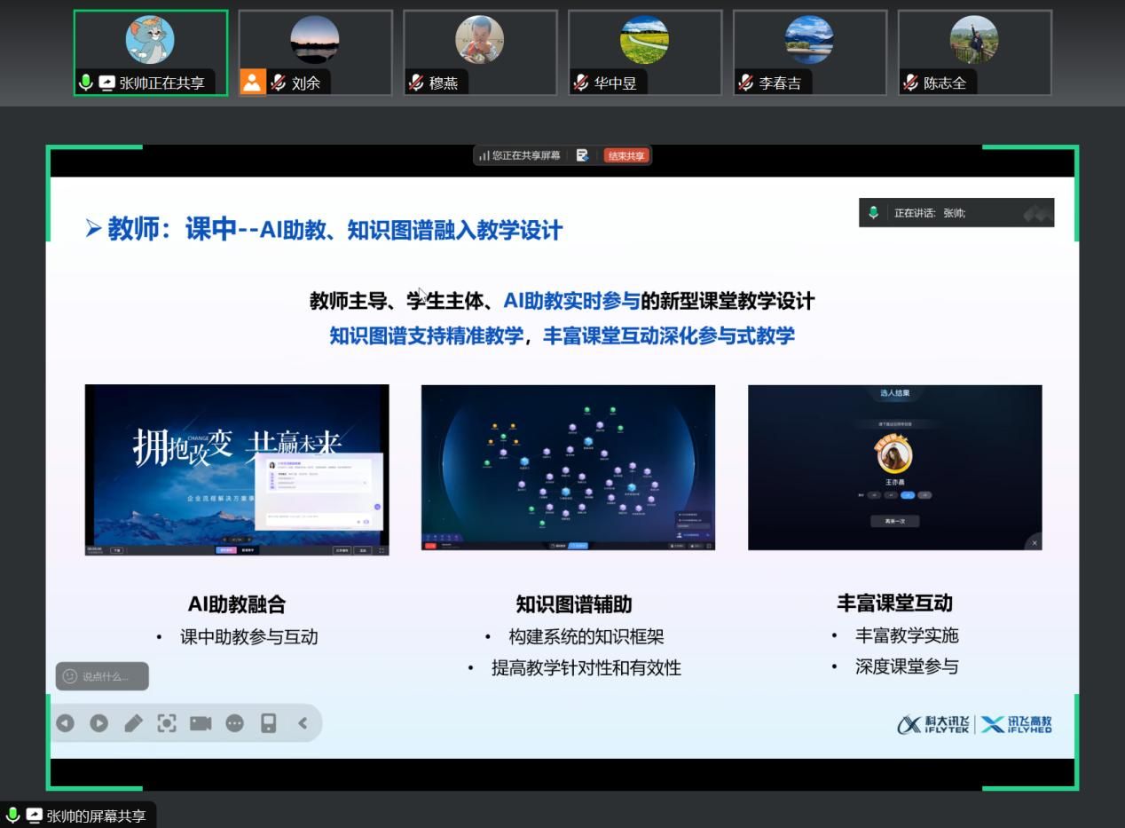 科大讯飞工程师张帅首先系统解析了“讯飞智慧课程平台”的核心架构与应用场景。平台依托大模型与知识图谱技术,实现课程资源的智能化重组,支持教师端AI助教实时辅助教学设计、学生端划词提问及引导式学伴互动。其次,张帅重点演示了知识图谱交叉分析、AI资源生成工具及学情闭环管理系统,为大家介绍了如何引入AI技术,深度融入“备课-授课-评价”全流程,助力教学减负增效。最后,张帅以《高等数学》课程为例,给大家介绍了智慧课程在学生端和教师端的具体呈现形式,并重点介绍了如何有效利用知识点专业图谱和智能习题库,显著提升学生自主学习效率。