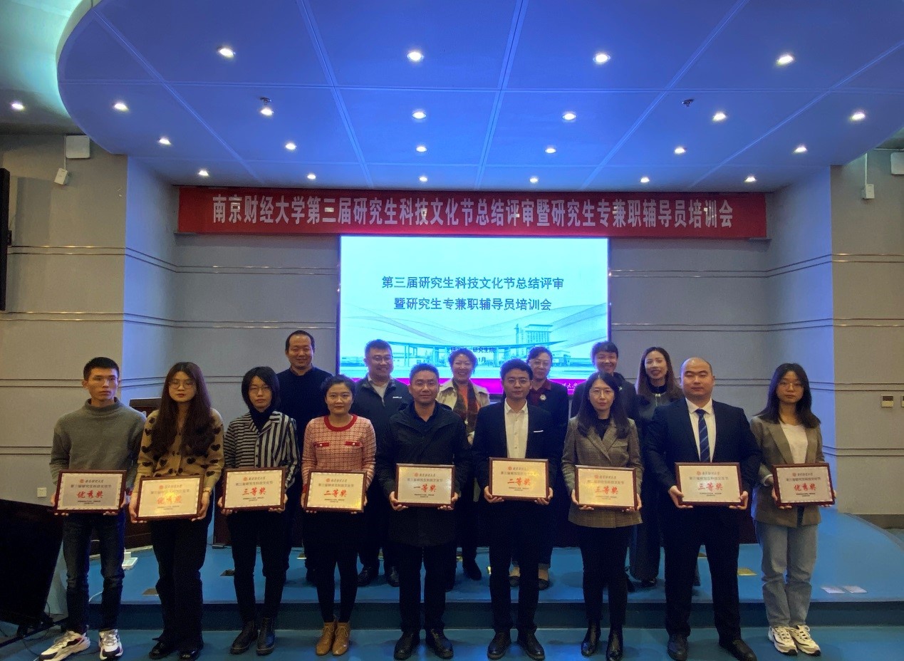 11月18日上午,我校第三届研究生科技文化节总结评审会暨研究生专兼职辅导员培训会在仙林校区行政楼二楼报告厅举行。本届研究生科技文化节的9个重点立项项目负责人现场汇报,校外专家、我校研究生院领导,以及各研究生培养单位专兼职辅导员担任评审会评委。根据评委现场打分,我院科技文化节立项活动——“紫经杯”研究生科技论坛荣获二等奖。